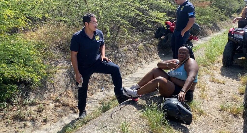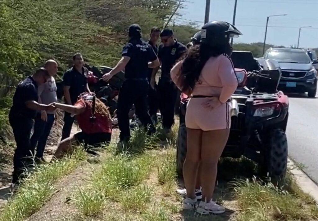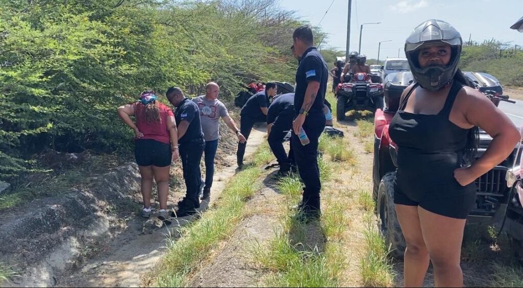 Dialuna atardi a drenta informe di 2 turista femenino lo a accidenta pabao e rotonde Tanki Flip, mesora a dirigi tanto polis como ambulans na e sitio. Bomberonan cual net tabata saliendo a para pa duna asistencia na e victimanan pero esakinan no tabata desea di haya atencion medico y a prefera di nan mes bay na un centro medico pa haya atencion. E quadracer tambe a haya basta sla y un pick-up di e compania mes a bin pa buske mientras ambos dama a ser hiba riba un otro quadracer pa e atencion medico.