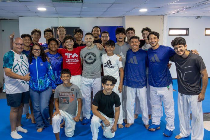 Recien a reuni cu presidente Gustavo Velasquez y Vice Presidente Felix Tromp di Aruba Karate Bond (AKB) y miembronan di e organisacion “Aruba Sports Hub” cu ta ser representa door di atleta di Karate Nathan Boekhoudt y entrenador y medayista Olimpico Stanislav Hurona. Stanislav Hurona ta un atleta y entrenador cu ta mundialmente reconoci pa su logranan, unda a logra un medaya di brons na Tokyo2020 y medaya di oro na e World Games di Wroclaw di 2017 pa su pais di Ukrania. Stanislav ta na Aruba actualmente na Aruba den conexion cu un campo di entrenamento unda un cantidad di atleta di alto rendimento a bin hunto na Aruba pa etrena cu Stanislav.