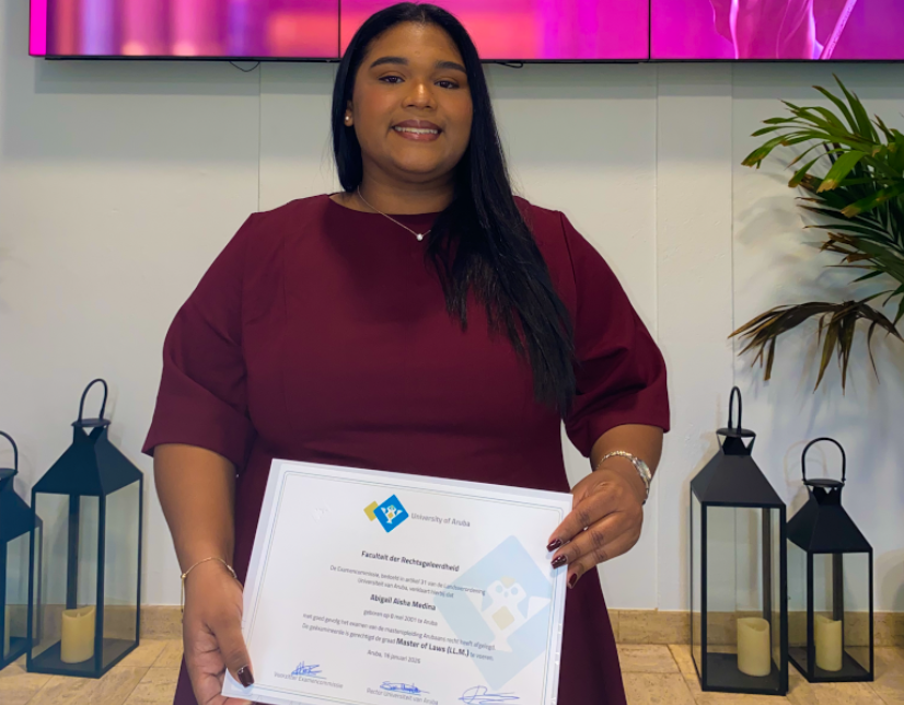 Dia 16 di januari, 2026, a gradua na e Facultad di Ley na Universidad di Aruba, Abigail Aisha Medina. El a gradua defendiendo su tesis titula: