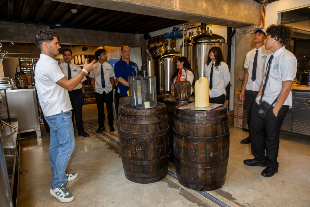 Colegio EPI a bishita Bodegas Papiamento, caminda nan a haya e oportunidad pa traha nan propio juice, di caña cu nan mes a primi uzando un machine special. E studiantenan a siña con Bodegas Papiamento ta cultiva hopi di nan ingredientenan localmente. E scolnan di EPB a bishita Pepe Margo Distillery, caminda e studiantenan a siña tocante historia di e destileria y e proceso pa produci licor. Nan por a mira di cerca y compronde e importancia di calidad y tradicion den e produccion di un producto local.