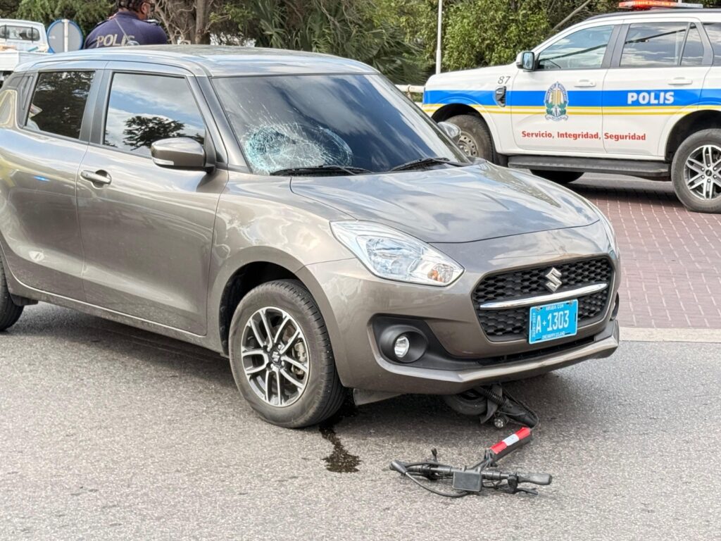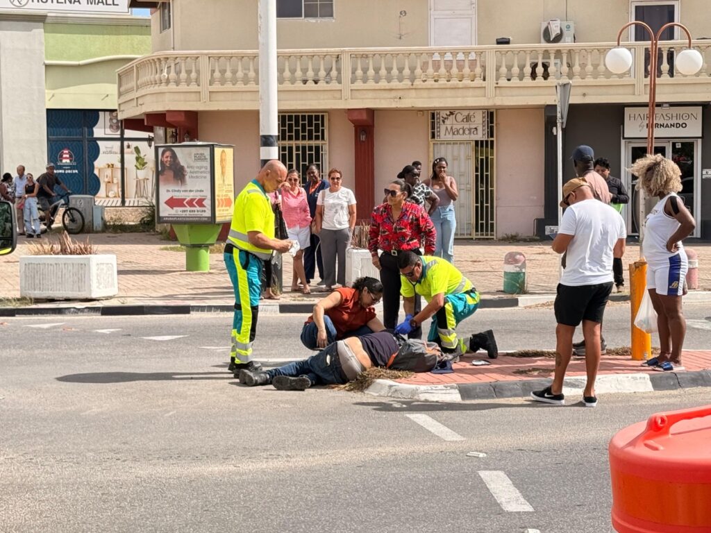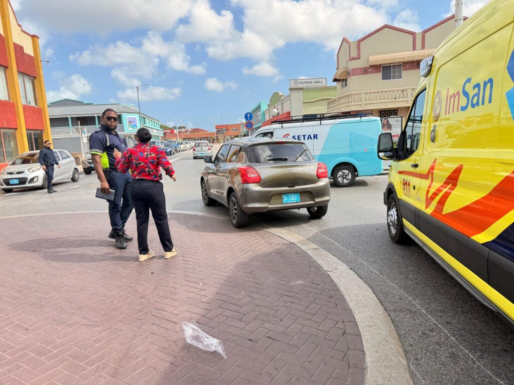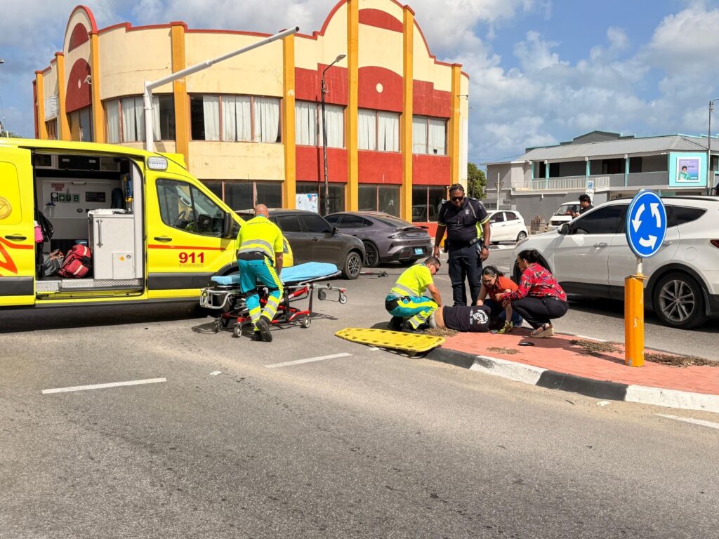 Dialuna mainta a drenta informe di un accidente cu hende herida na e rotonde pabao di Elmar na Oranjestad, mesora a dirigi tanto polis como ambulans na e sitio. Na yegada di e patruya ya caba ambulans tabata na e sitio. E patruya a bin compronde cu aki ta trata di un accidente entre un persona riba un step electrico y un auto unda e auto cu tabata riba e rotonde a bay dal e step y e persona riba e step a bay dal su cabes na e windshield di e auto. E personal di ambulans a atende e victima y a transporte pa hospital.