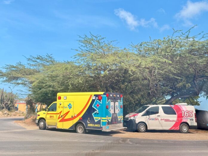Diaranson atardi a drenta informe di un accidente cu hende herida patras di Aruba Bank Hato, mesora a dirigi tanto polis como ambulans na e sitio. Na yegada di e patruya a bin compronde cu un chauffeur ta keha di basta dolor di lomba y na su pia. Na yegada di e ambulans nan a atende e victima na e sitio mes.