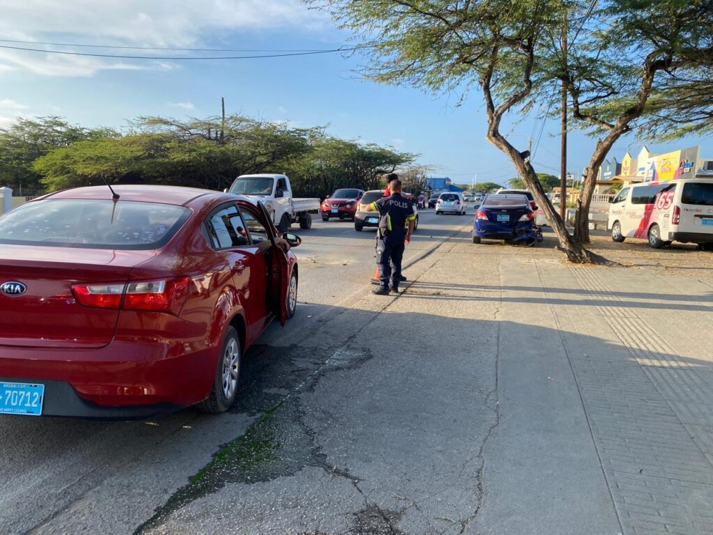 Diasabra atardi a drenta informe di un accidente cu hense herida dilanti Ramada Colombiana, mesora a dirigi tanto polis como ambulans na e sitio. Na yegada di e patruya a bin compronde cu aki ta trata di un accidente di cadena unda e chauffeur di un Kia Rio no a regula su velocidad ni a mantene distancia a bay dal tras di un Hyundai Accent y consecutivamente e Accent a bay dal tras di e Kia Sorento cu tabata su dilanti. Debi na e impacto un persona so a resulta herida. Na yegada di e ambulans nan a atende e victima na e sitio mes.