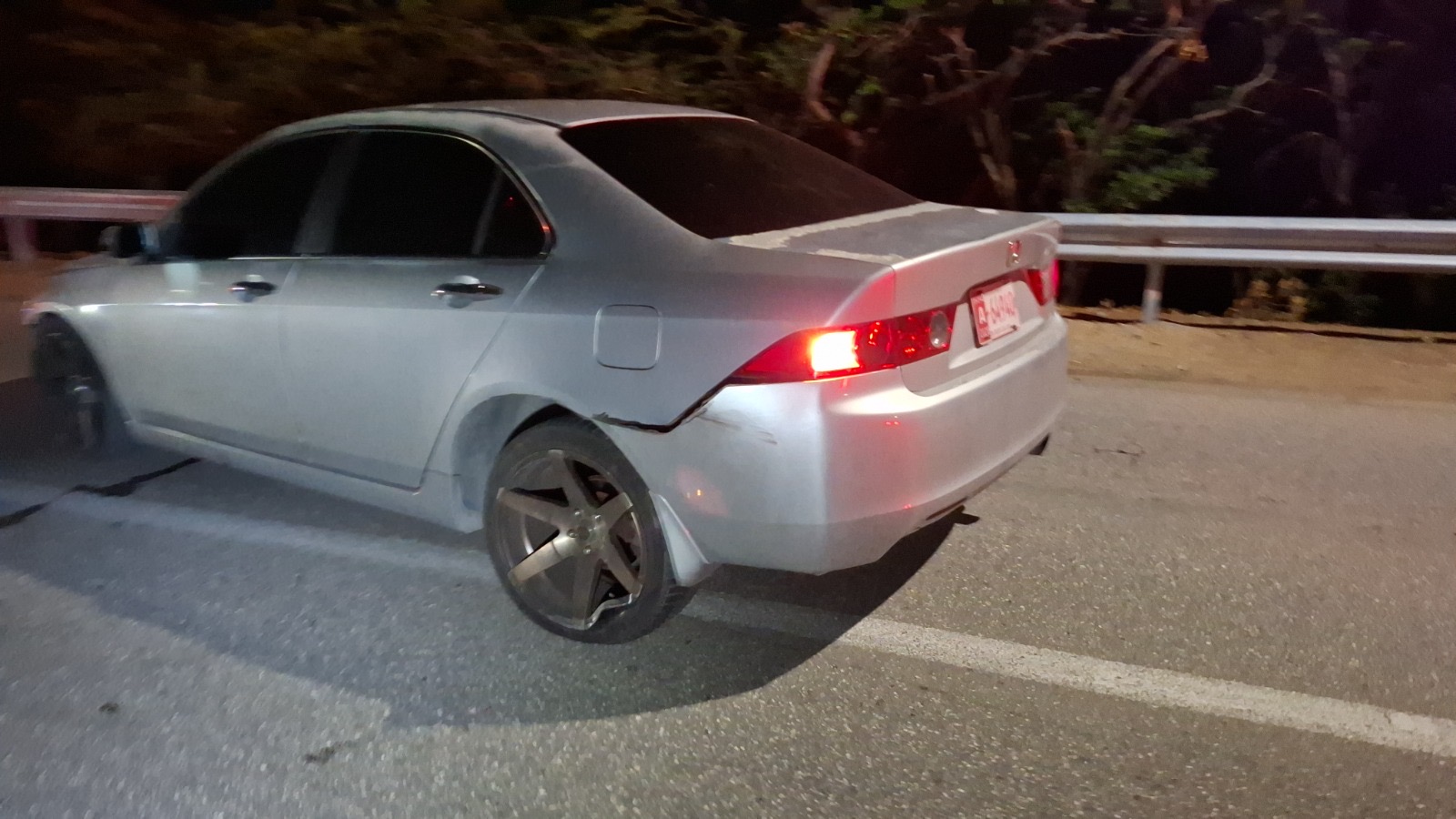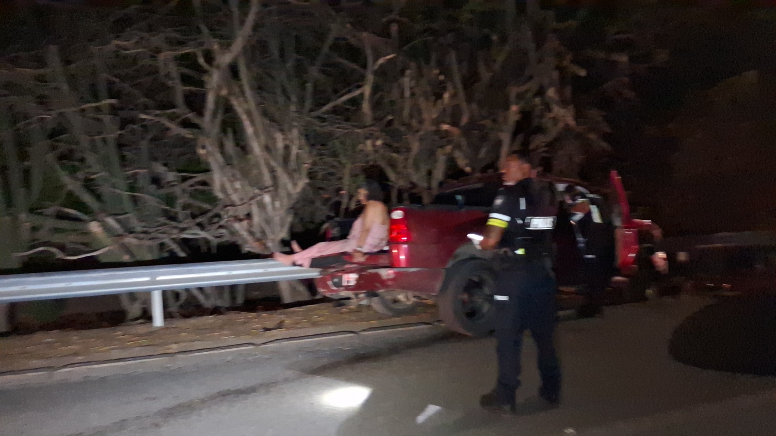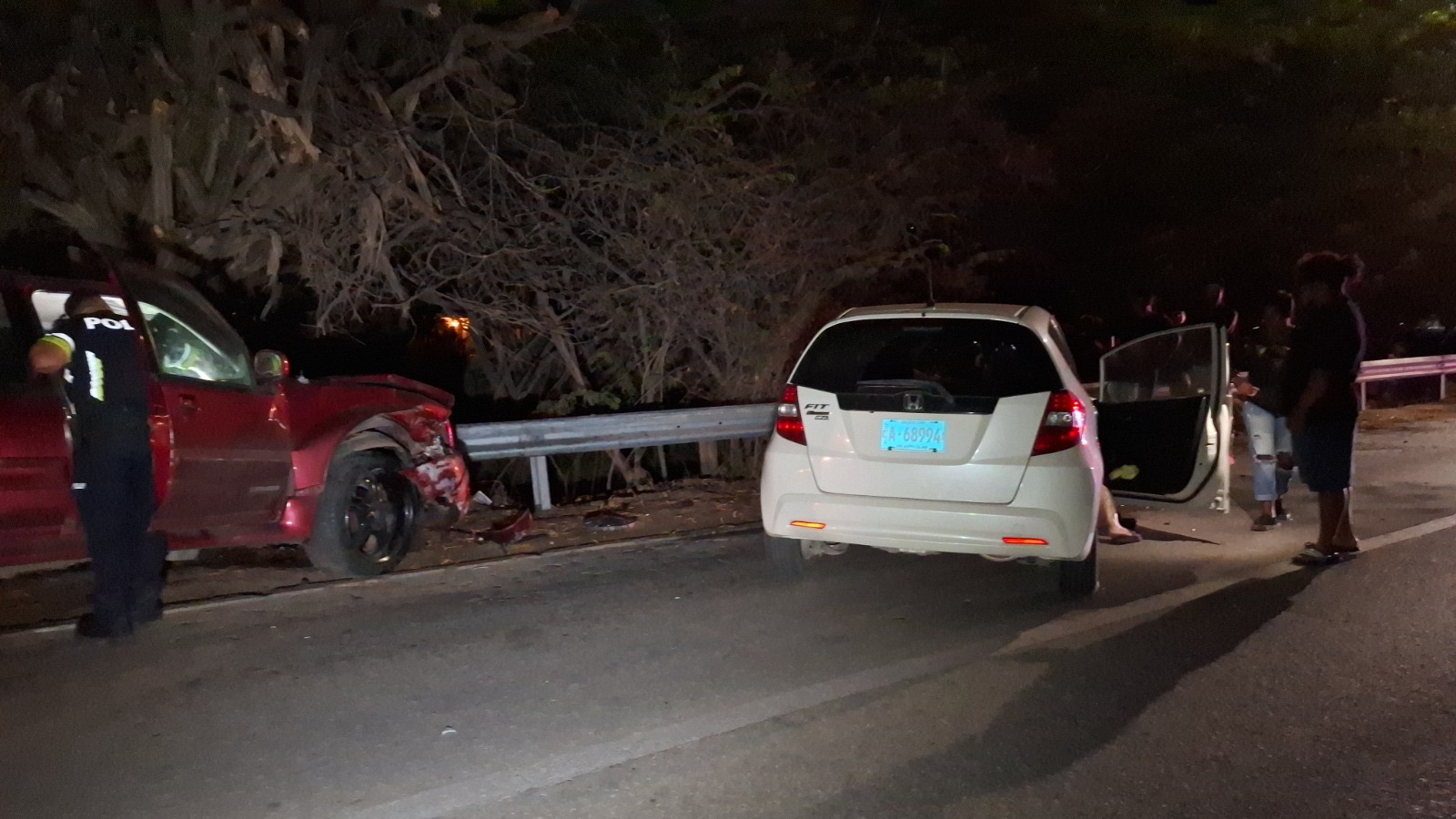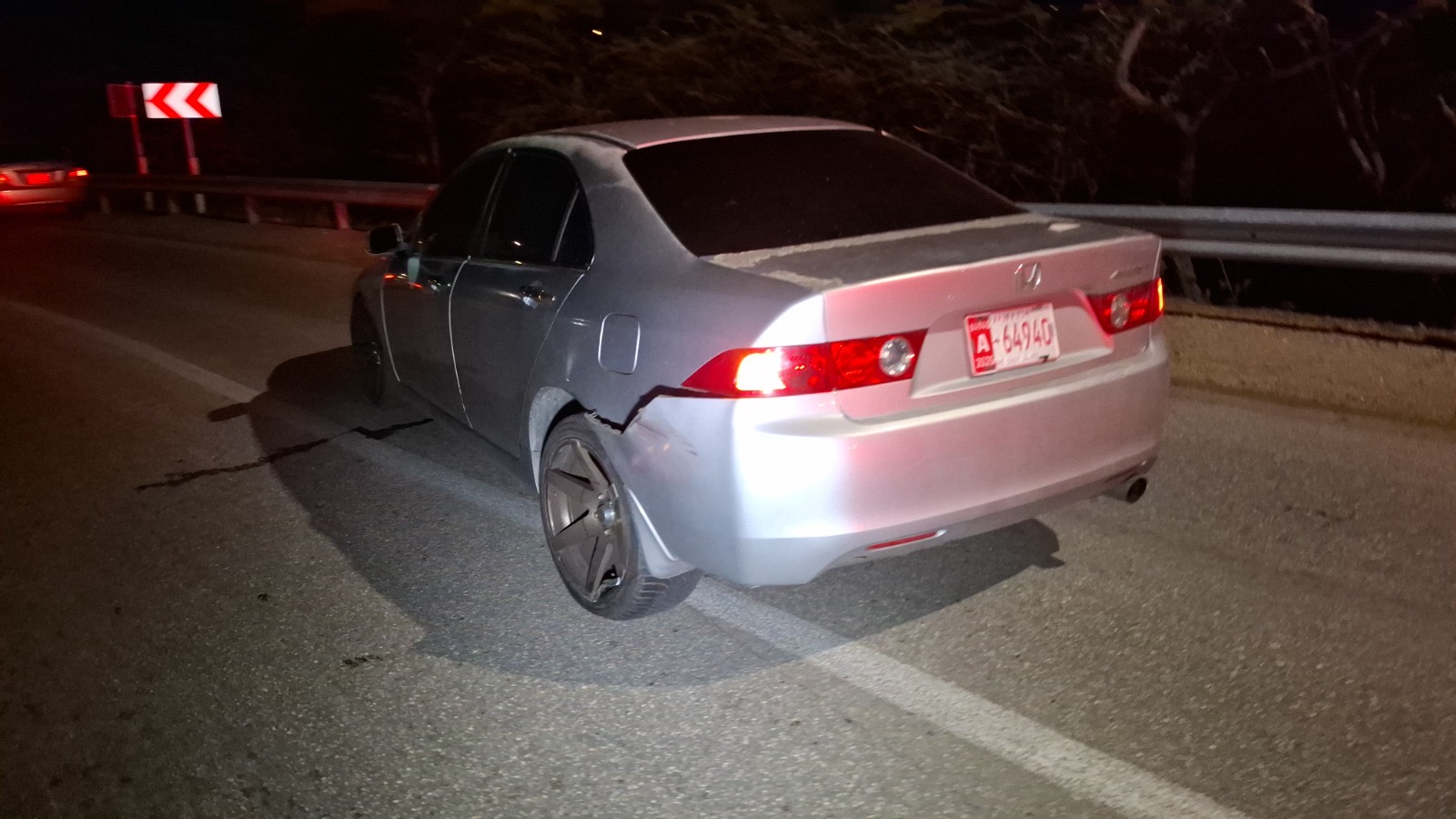 Diabierna anochi a drenta informe di un accidente cu hende herida na e birada riba e caminda di Noord pa Sabana Liber, mesora a dirigi tanto polis como ambulans na e sitio. Na yegada di e patruya a bin compronde cu aki ta trata di un accidente unda cu un pick-up maneha pa un chauffeur posiblemente bao influencia a perde control a dal un Honda Accord shinishi y despues bay dal frontal riba un Honda Fit blanco y finalmente bay dal riba e “vangrails”. Debi na e fuerte impacto un dama pasahero turista den e pick-up a resulta herida, na yegada di e ambulans nan a atende e dama turista pero como cu e no kier paga nan no a transporte pa hospital. Un rato despues un familiar di e turista a yega y a transporte pa hospital. Polis a detene e chauffeur pa a core auto bao influencia.