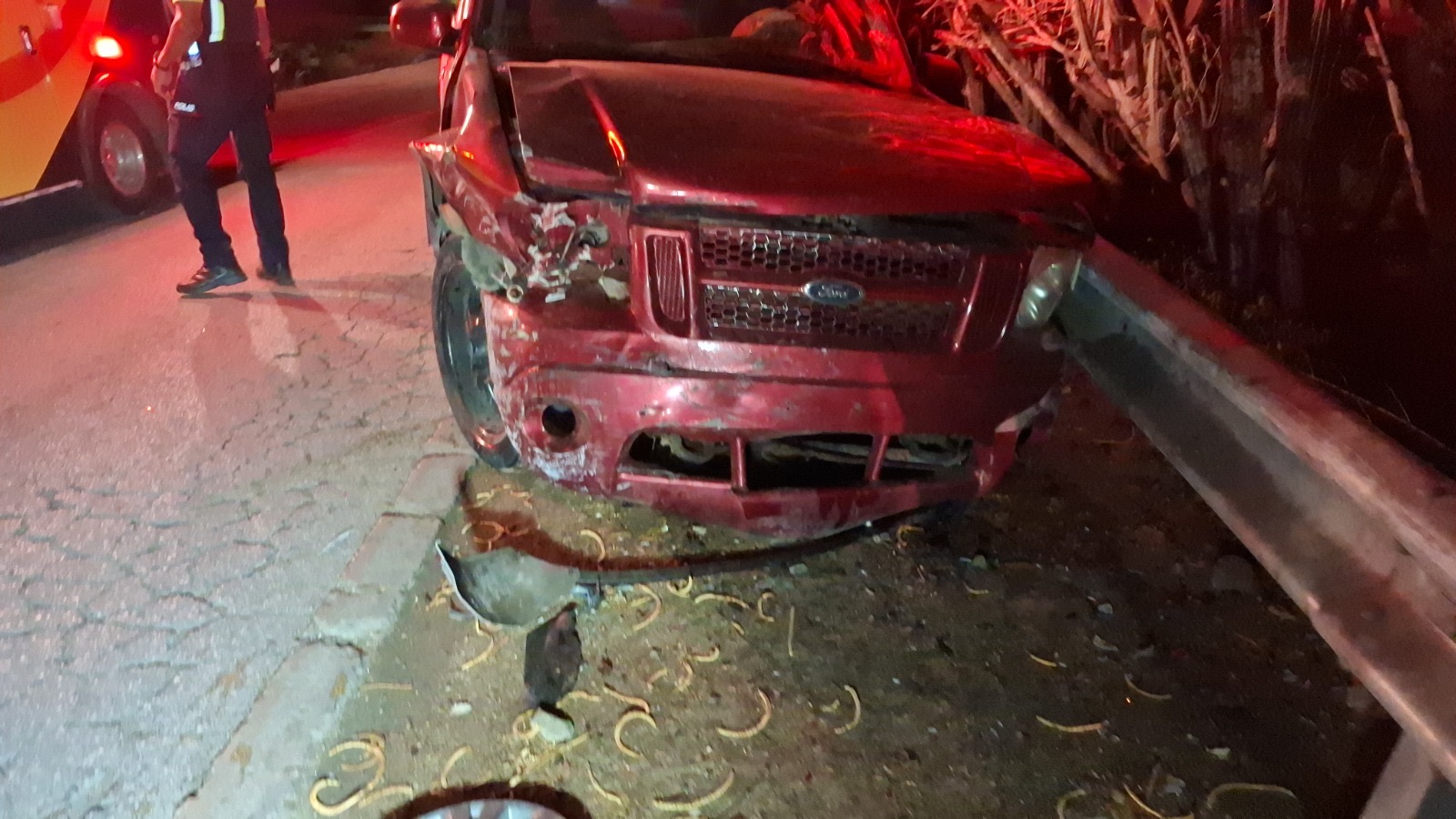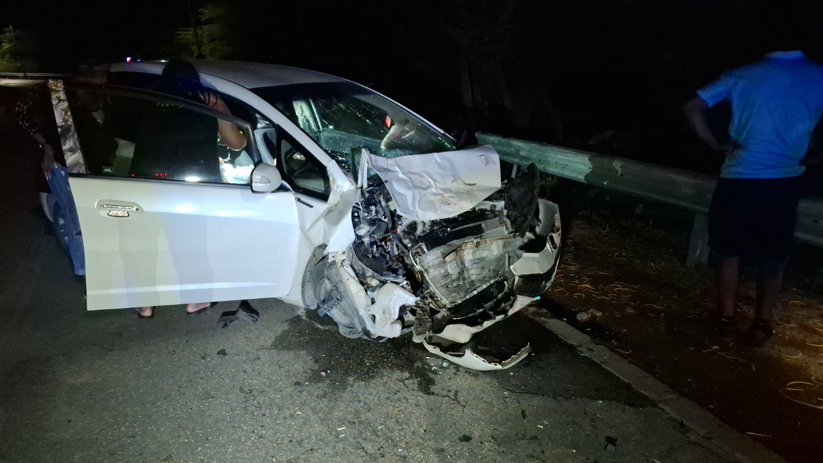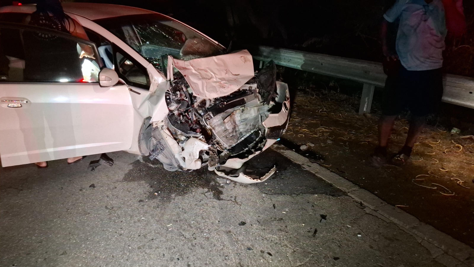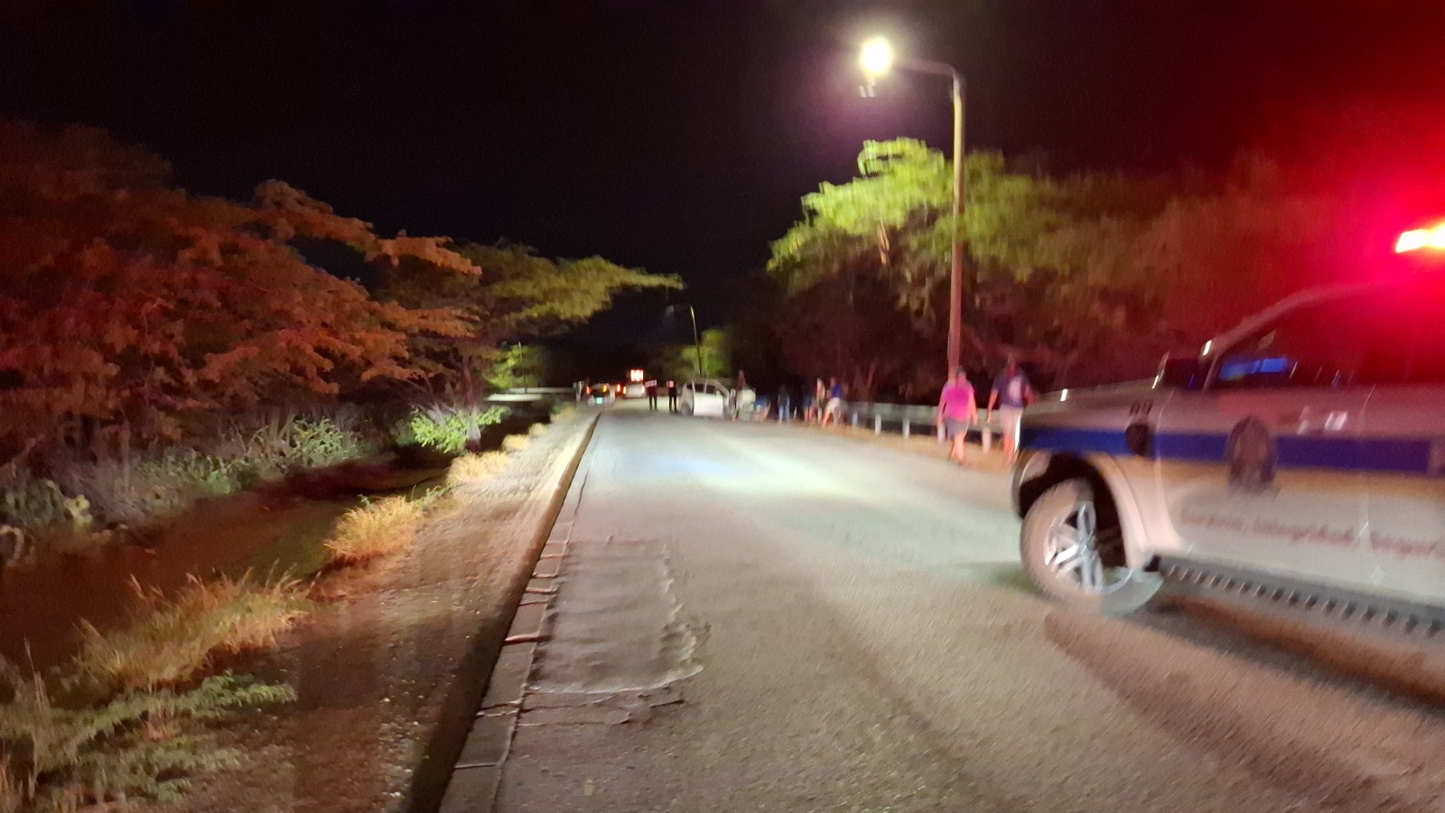 Diabierna anochi a drenta informe di un accidente cu hende herida na e birada riba e caminda di Noord pa Sabana Liber, mesora a dirigi tanto polis como ambulans na e sitio. Na yegada di e patruya a bin compronde cu aki ta trata di un accidente unda cu un pick-up maneha pa un chauffeur posiblemente bao influencia a perde control a dal un Honda Accord shinishi y despues bay dal frontal riba un Honda Fit blanco y finalmente bay dal riba e “vangrails”. Debi na e fuerte impacto un dama pasahero turista den e pick-up a resulta herida, na yegada di e ambulans nan a atende e dama turista pero como cu e no kier paga nan no a transporte pa hospital. Un rato despues un familiar di e turista a yega y a transporte pa hospital. Polis a detene e chauffeur pa a core auto bao influencia.