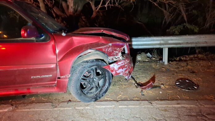 Diabierna anochi a drenta informe di un accidente cu hende herida na e birada riba e caminda di Noord pa Sabana Liber, mesora a dirigi tanto polis como ambulans na e sitio. Na yegada di e patruya a bin compronde cu aki ta trata di un accidente unda cu un pick-up maneha pa un chauffeur posiblemente bao influencia a perde control a dal un Honda Accord shinishi y despues bay dal frontal riba un Honda Fit blanco y finalmente bay dal riba e “vangrails”. Debi na e fuerte impacto un dama pasahero turista den e pick-up a resulta herida, na yegada di e ambulans nan a atende e dama turista pero como cu e no kier paga nan no a transporte pa hospital. Un rato despues un familiar di e turista a yega y a transporte pa hospital. Polis a detene e chauffeur pa a core auto bao influencia.