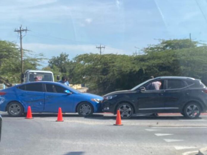 Diamars atardi a drenta informe di un accidente na e rotonde Bushiri riba E.J. “Watty” Vos blvd., mesora a dirigi un patruya na e sitio. Na yegada di e patruya a bin compronde cu aki ta trata di un accidente pa falta di preferencia pero afortunadamente ningun hende a reuslta herida.