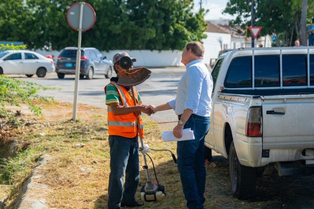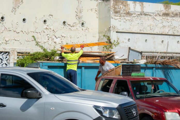 Diahuebs mainta trempan, e ekipo di Accion di Bario cu ta consisti di DOW, Serlimar, Ploegnan di limpiesa, Bureau City Inspector hunto cu Prome Minister Mike Eman, a topa na ex Lagoon Service Station pa duna inicio na e accion di limpiesa.
