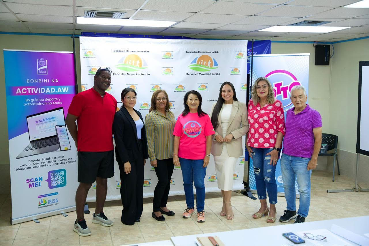 Fundacion Movemento ta Bida hunto cu Minister di deporte Sra. Gerlien Croes,LottopaDeporte, Minister di asuntonan social y adulto mayor Sra. Mervin Wyatt-Ras, DirectieOuderenzaken y sr. Giovanni Leocadia, RYG (Reach your Goals), ta uni forza paorganisa un Olimpiada pa nos adulto mayornan na Aruba. E idea a origina oraINDEBON a invita FMTB pa nan Olimpiada pa adulto mayor na Boneiro. Esaki tabatana Juni 2025. Miembronan di directiva a acepta e invitacion aki y a experienciacongrandi e evento aki ta y pa trece esaki na Aruba. Mesora FMTB a bin den accionoraayega Aruba bek pa cuminsa busca ayudo financiero pa por ehecuta e projectoaki.