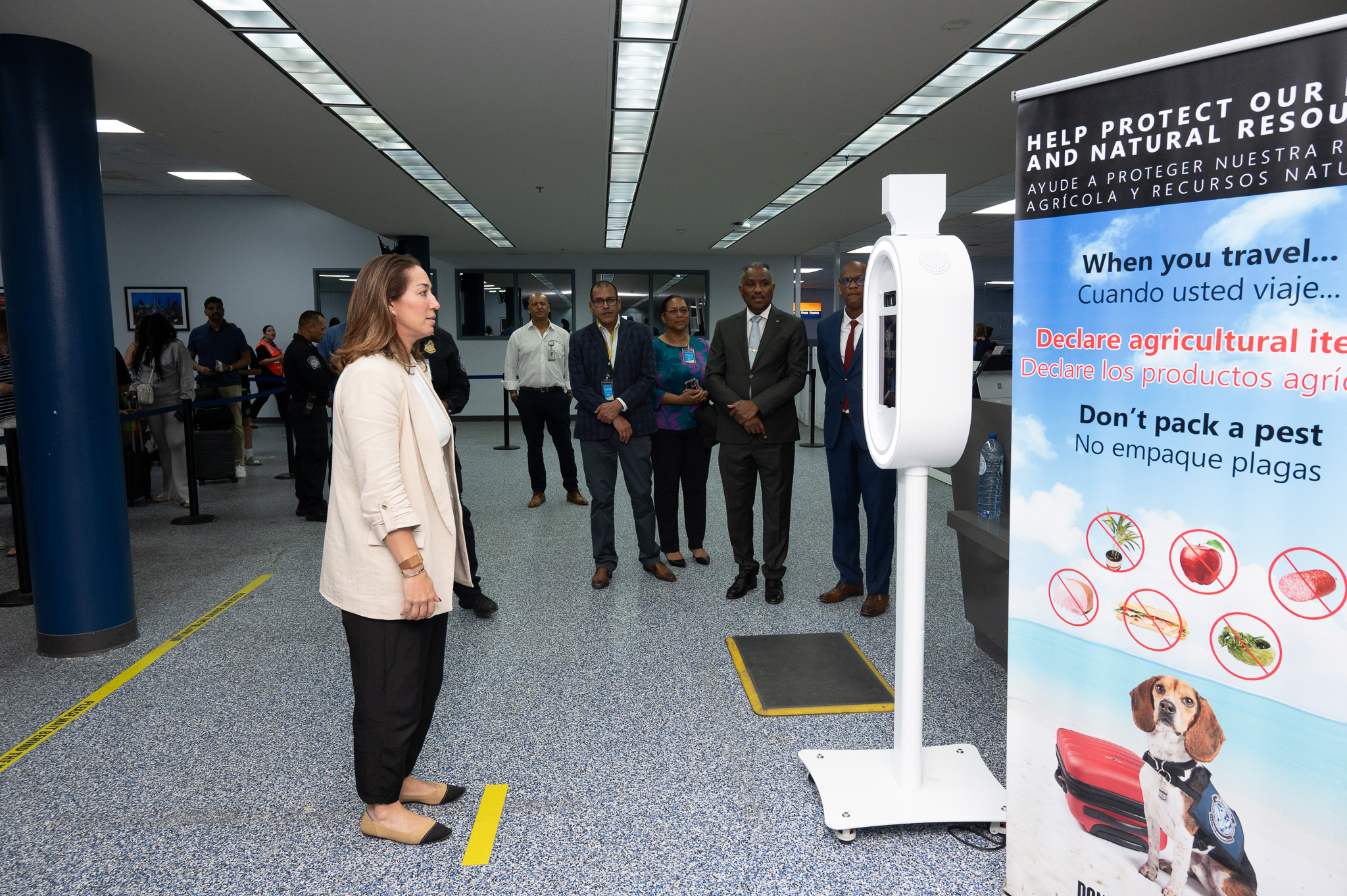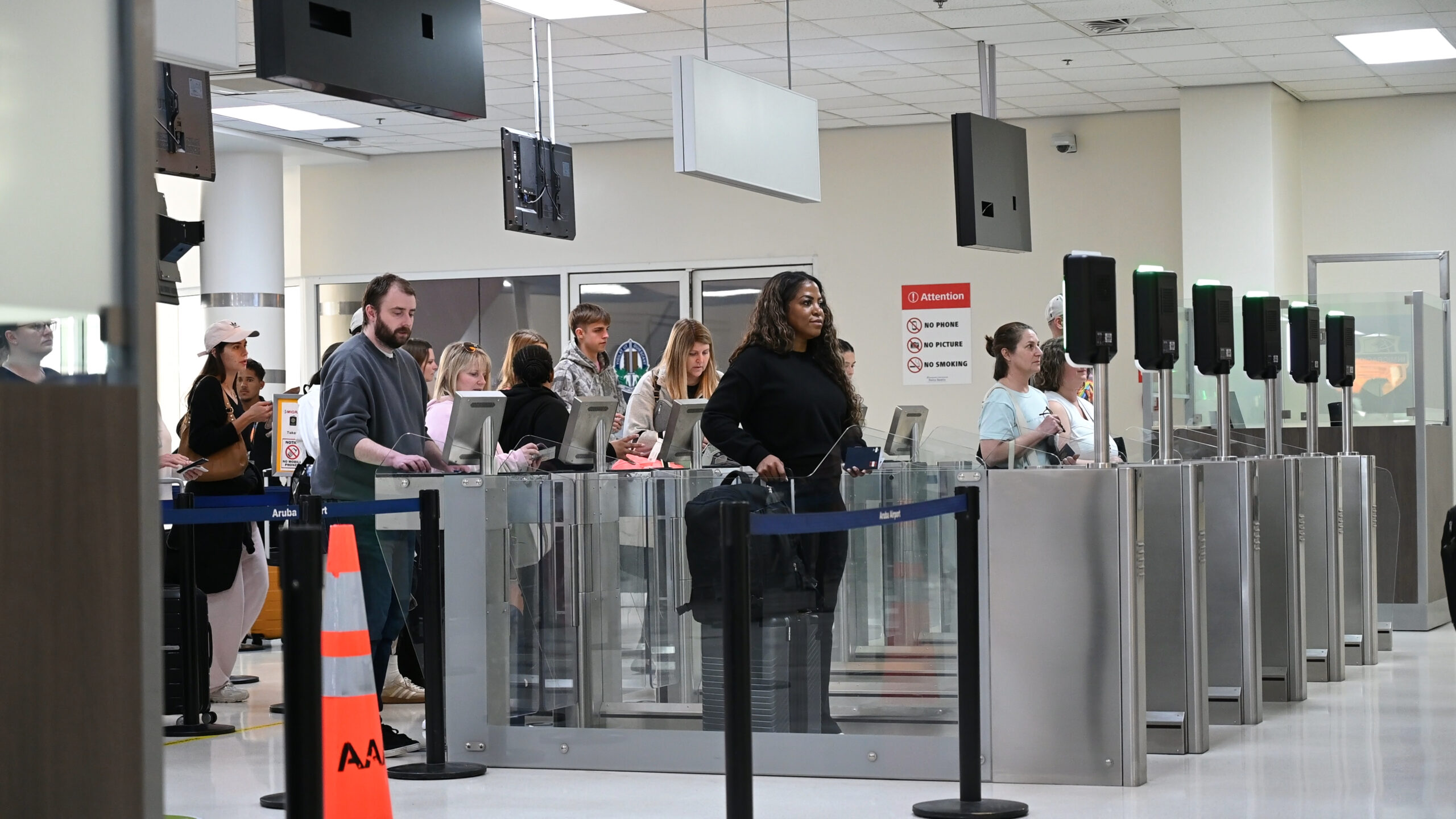 Despues di e puntonan di control di entrada di inmigracion, e delegacion a continua cu un bishita na area di US CBP preclearance. Aki nan a haya un splicacion di e sistema integra cu ta procesa miles di pasahero cu destino Estados Unidos tur dia. E proceso aki ta inclui tecnologia manera APIS/ATS/TECS, Global Entry y sistemanan biometrico, cu ta acelera e fluho di pasaheronan, specialmente pa ciudadanonan Americano.