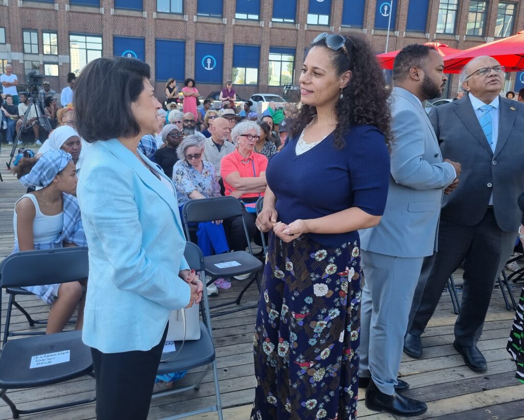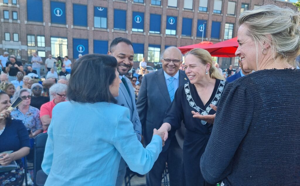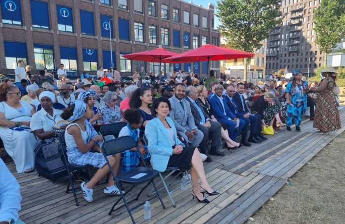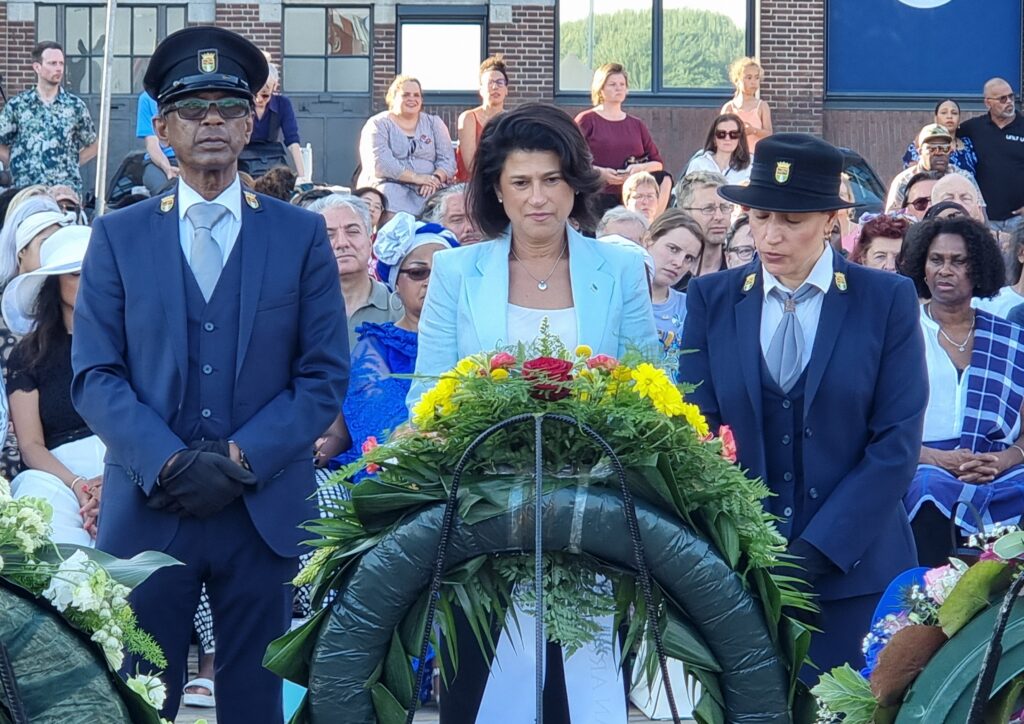 Directora di Gabinete di Minister Plenipotenciario di Aruba Joselin Croes LL.M/M.Sc a pone riba dialuna 30 di Juni un krans na ocacion di e Conmemoracion di e Abolicion di Slavitud na Rotterdam.