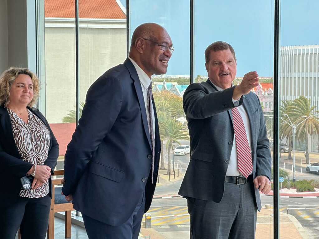 Como parti di e bishita, e delegacion a haya tambe oportunidad pa aprecia e beyesa di Aruba for di e bista panoramico na tercer piso di Bestuurskantoor, reflehando e atractivo unico di nos isla.