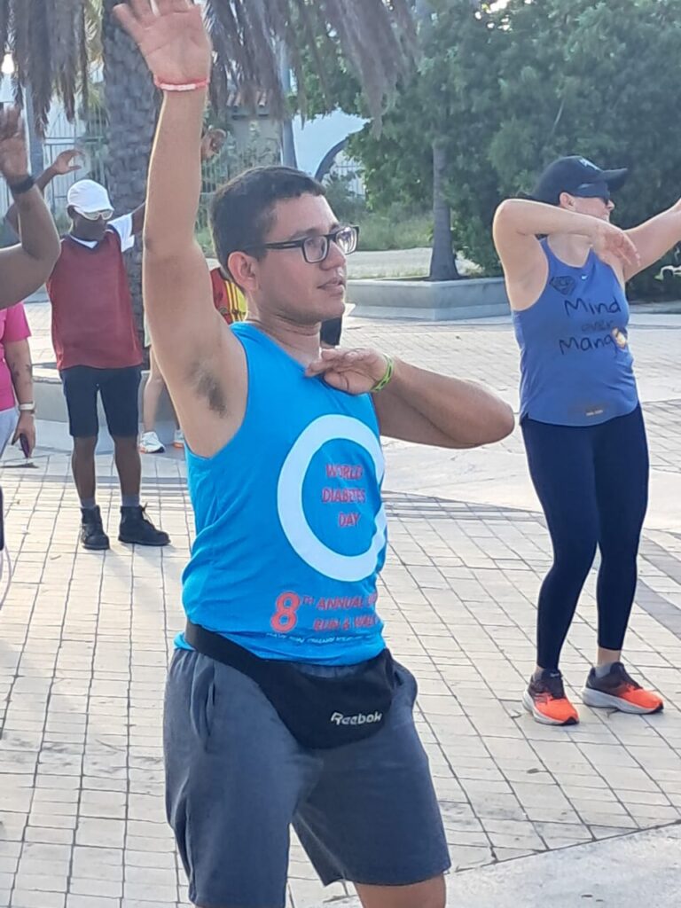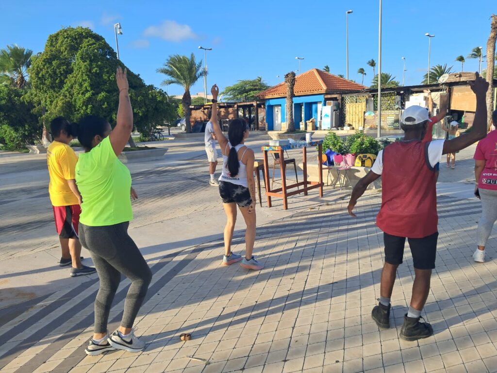 E programa a cuminsa cu hopi entusiasmo cu un warm-up di Zumba, bao instruccion di Thyara Doornkamp, cu a prepara e participantennan fisico y mentalmente pa e caminata. Su energia y entusiasmo a contribui significativamente na crea un ambiente positivo, inclusivo y anima, unda promocion di salud fisico y bienestar comunitario tabata central. Aruba One Happy Island Lions Club ta expresa un danki especial na Thyara Doornkamp pa su aporte profesional y motivador.