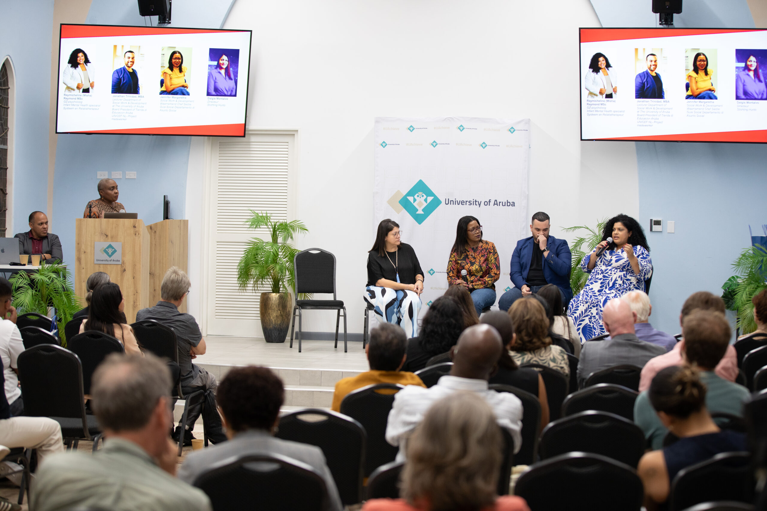 Un panel di expertonan modera door di Michele Brooks a provee un bista mas profundo den e significacion patras di e data. Panelistanan Raymicheline (Misha) Raymond, Jonathan Trinidad, Dalgis Montalve y Jennifer Margaretha a discuti e conexion entre cas, scol, y bario; e necesidad pa sosten di mayor accesibel; capacidad di docente y bienestar di scol; condicionnan di bario; y e importancia pa institucionalisa e Monitor pa Hubentud como un herment pa por keda uza pa por tene intervencion na tempo y desaroyo di polisa a largo plaso. E simposio tambe a pone enfasis ariba e importancia pa tene midinan di follow-up regularmente cada 3 aña, sigurando asina cu Aruba tin e data continuo cu e mester pa forma polisanan y solucionnan pa hubentud efectivo y di tempo largo.