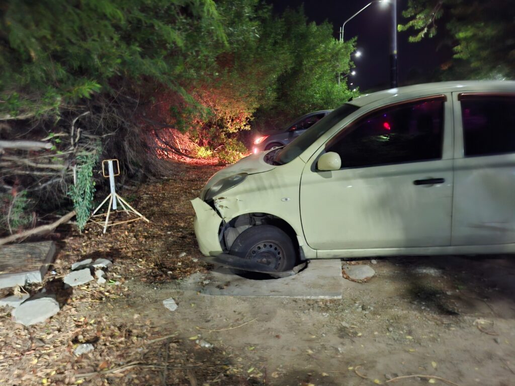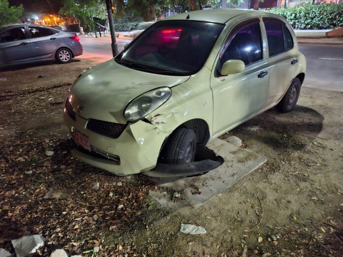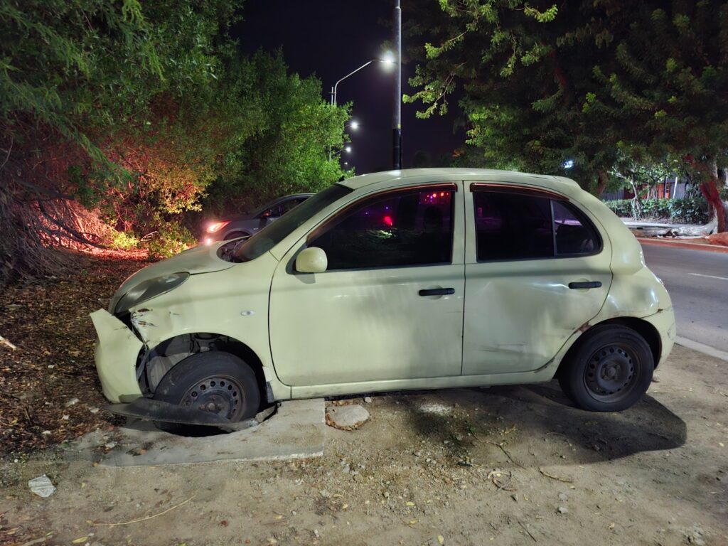 Diaranson madruga a drenta informe di un incidente cu a tuma lugar na Palm Beach, mesora a dirigi un patruya na e sitio. Na yegada di e patruya a bin compronde cu aki ta trata di un Nissan March cu a bay staciona y a para net riba e tapa di un riolering y esaki a move sac bak aden y e auto a keda pega eynan. Mester a yama un takelwagen pa bin saca e auto.