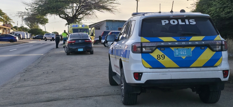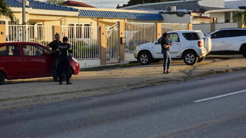 Na yegada polisnan a bay na un auto color blauw pabou di caminda, y despues cu polis di trafico a yega e la bay na un otro auto color cora pariba di caminda.