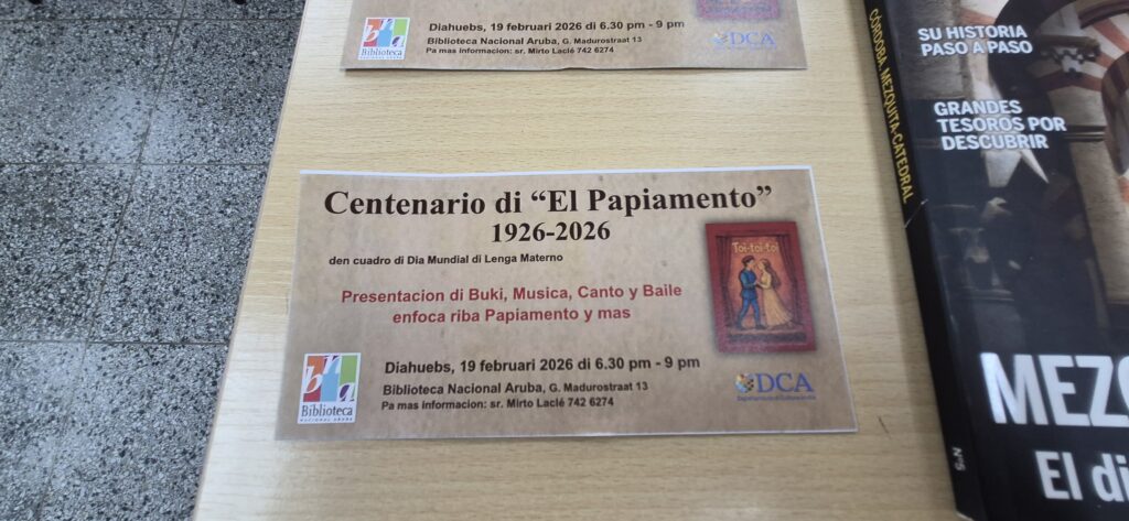 Diahuebs, 19 di februari 2026, di 6.30 pa 9.00 di anochi lo tin un actividad dedica na celebracion di Dia Mundial di Lenga Materno y mas, na Biblioteca Nacional Aruba, George Madurostraat, Oranjestad.