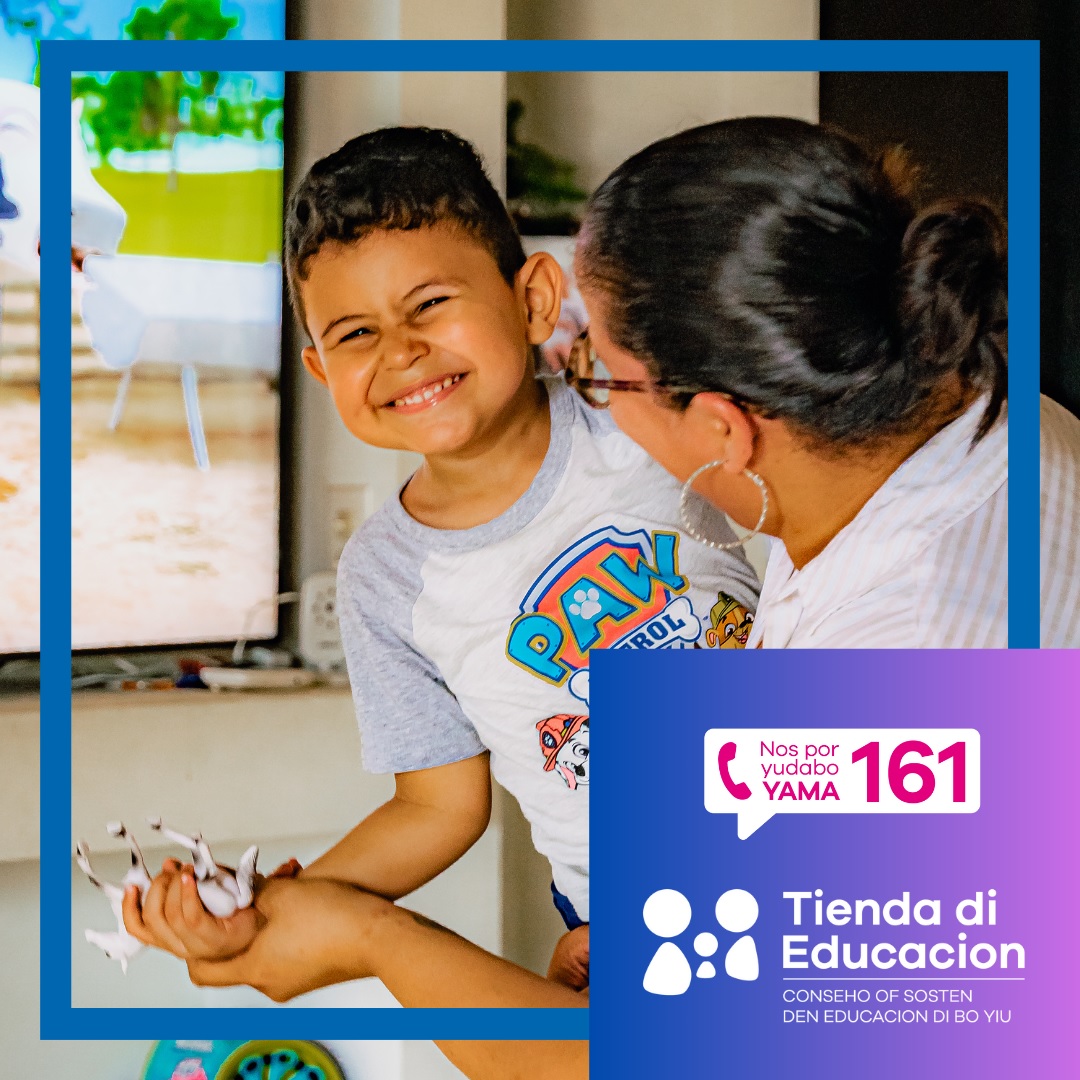 Si bo tin cualkier pregunta, of ta busca guia, conseho y sosten den con pa pone e tipnan aki den practica, of riba otro topico cu tin di haber cu criansa, educacion of bienestar di mucha y hoben, no duda pa tuma contacto cu nos. Bo por yama nos na 161 (completamente gratis pa telefon di Setar). Tambe, no lubida pa sigui nos riba Instagram y Facebook pa keda informa, inspira y conecta.