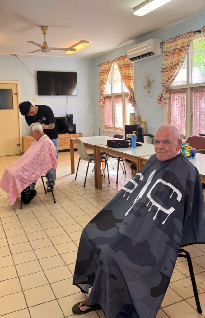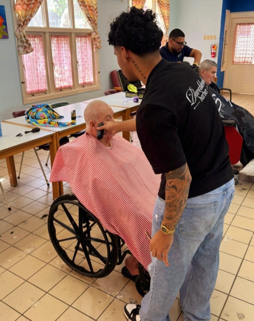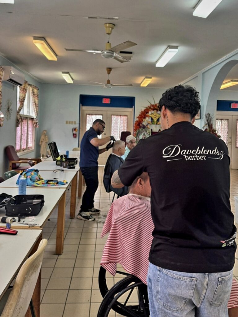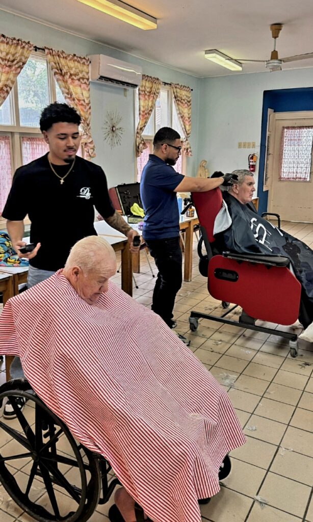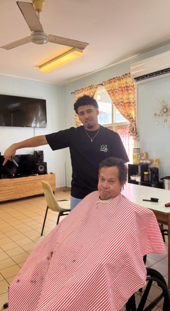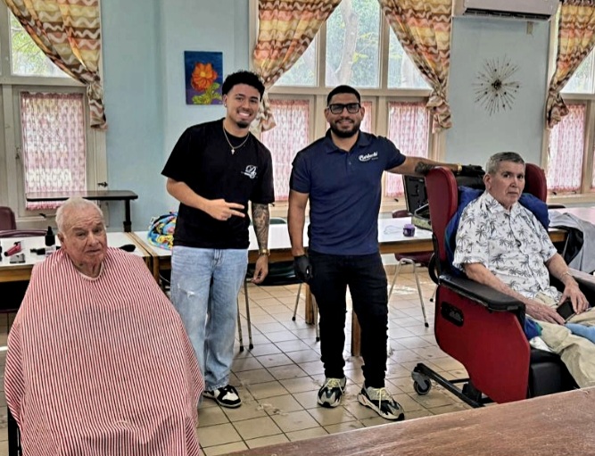 E siman aki e dos hoben barberonan Donovan Henriquez di Barbachi Barbershop y David Wong di Island Fades a uni forsa y a brinda servicio boluntario na e clientenan di San Pedro Pavilioen situa den e edificio di Hospital bieu na Playa.