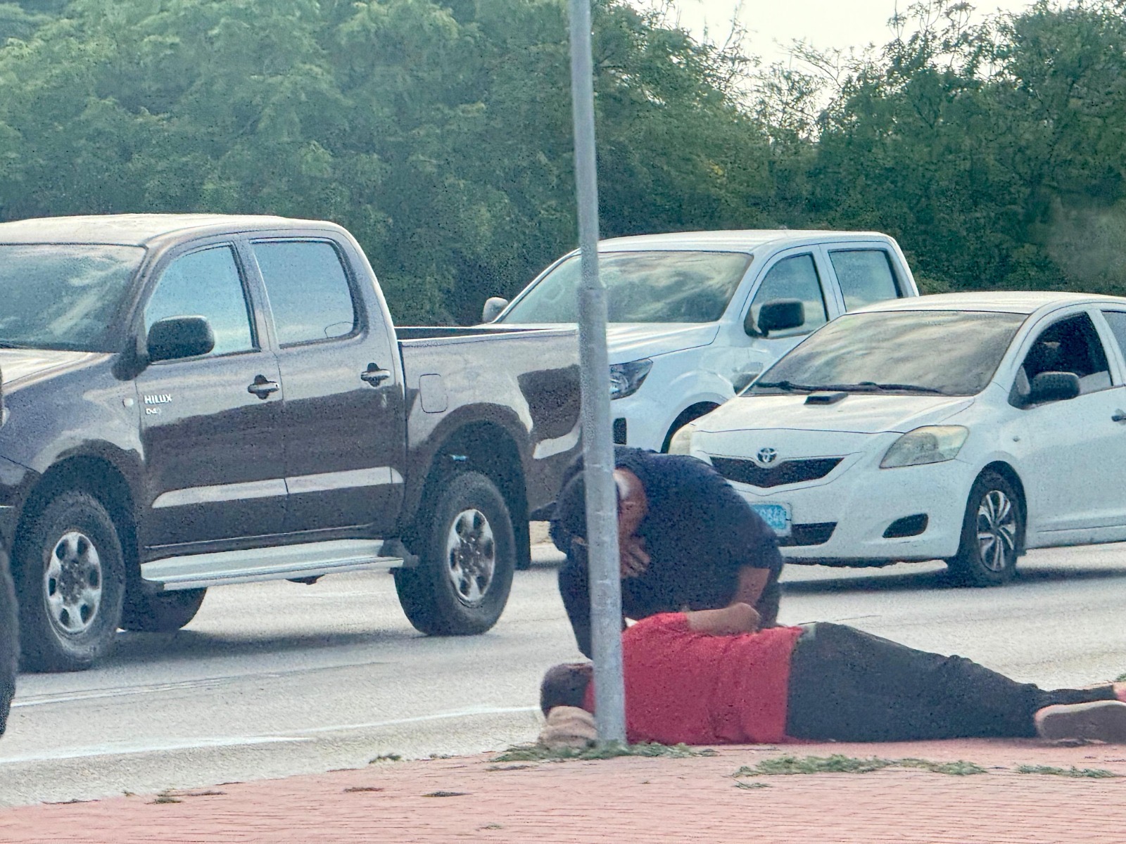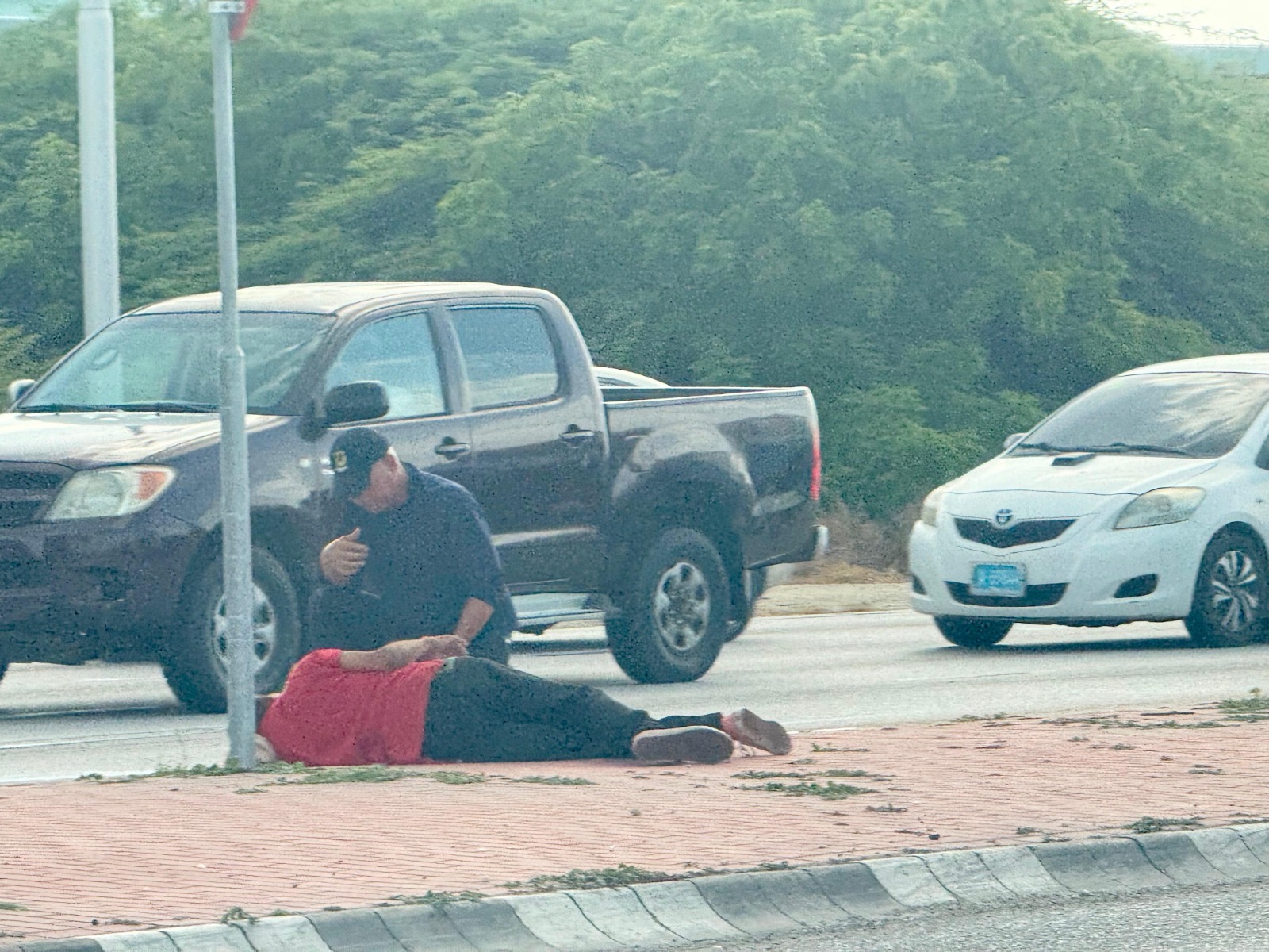 Diabierna mainta bomberonan pasando riba e caminda principal dilanti airport a nota un persona benta abao riba e isleta cu ta dividi e camindanan mesora nan a drenta accion y a brinda aistencia y yudansa na un persona conosi den e bario di Wayaca cual na varios ocasion ta dal abao y keda abao. Nan a pidi pa polis y un ambulans pa asina bin atende. Na yegada di e ambulans nan a atende y a transporte pa hospital.