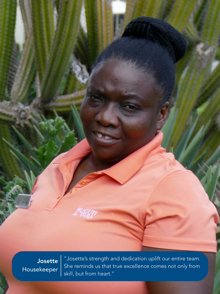 Loke ta haci Josette destaca ta e spirito cu e ta trece na su trabou. Su confiabilidad, humildad y orguyo sincero den su rol ta eleva e ekipo rond di dje y ta contribui na e ambiente agradabel y hospitalario cu e bishitantenan ta experiencia tur dia. Mediante su determinacion y compromiso constante, Josette ta recorda esnan rond di dje cu berdadero fortalesa hopi biaha ta expresa na un manera silencioso, manifestando den dedicacion y gracia cu un impacto cu ta wordo sinti tur caminda.