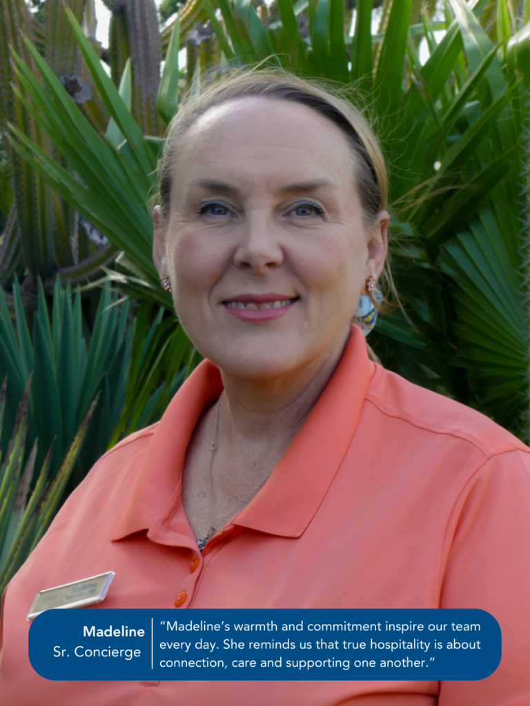 Pa hopi bishitantenan cu ta bolbe, Madeline “Madi” Gower-Fernandez ta un presencia familiar y agradabel cu ta yuda transforma un estadia na Bucuti & Tara den un conexion duradero. E ta un amiga di confianza cu ta corda nan historia, nan lugarnan preferi na e isla y, algun biaha, hasta e snack cu nan no por biba sin dje. E atencion reflexivo pa detaye y e cuido sincero aki ta haci cada bishitante sinti nan mes berdaderamente na cas.