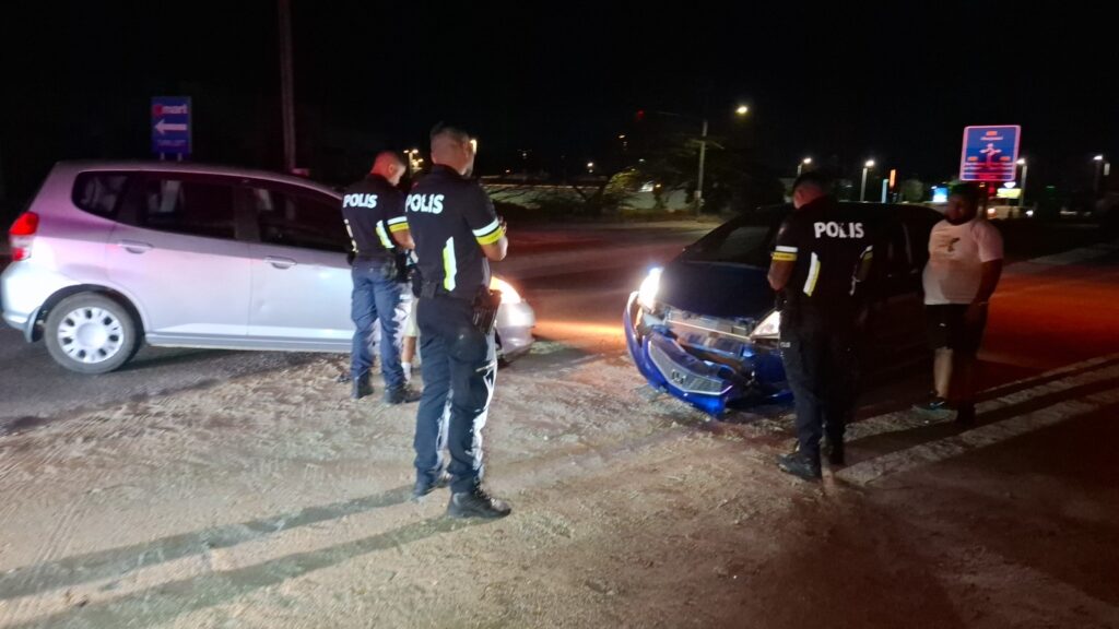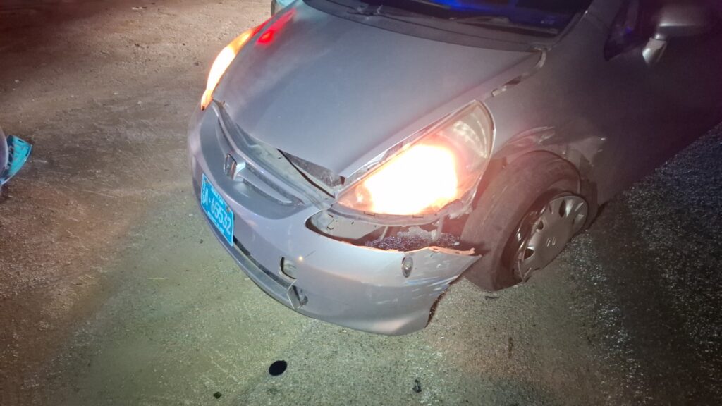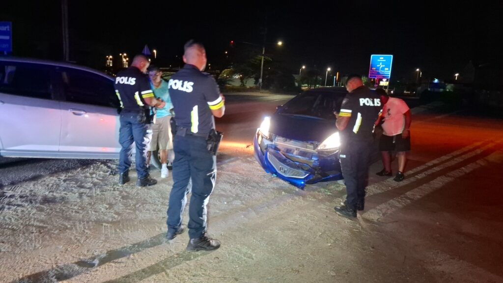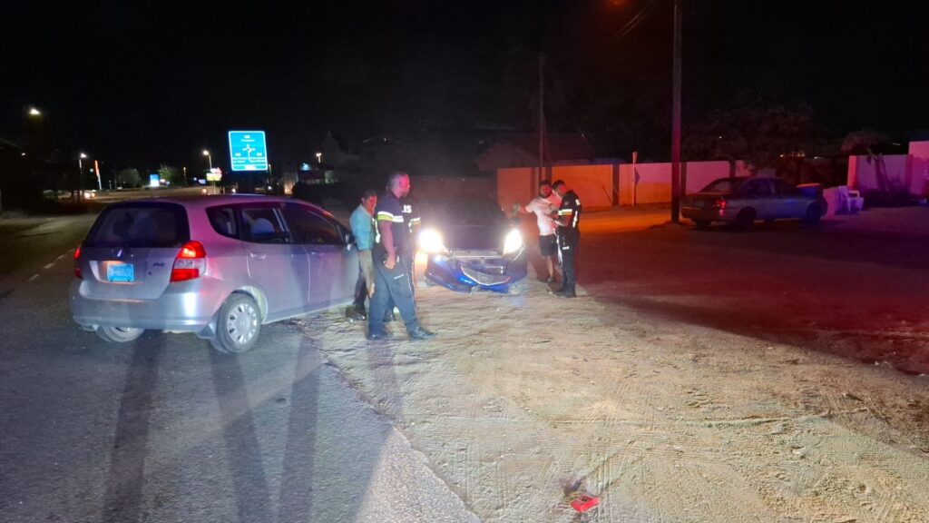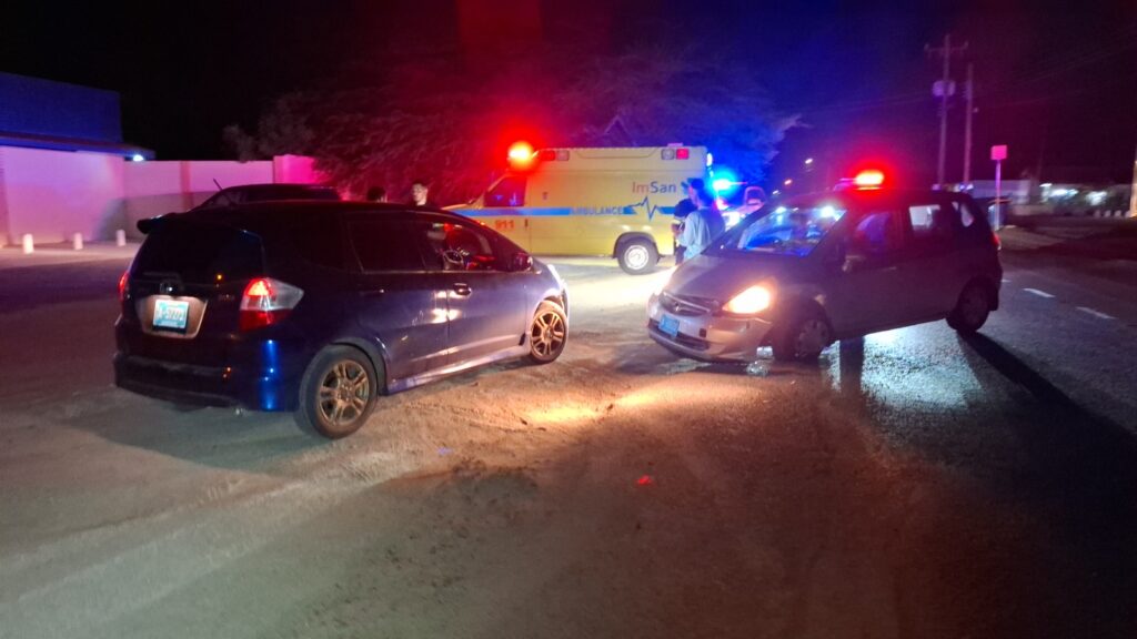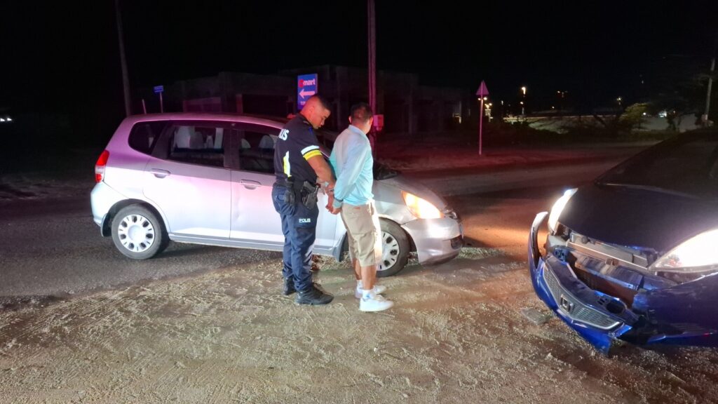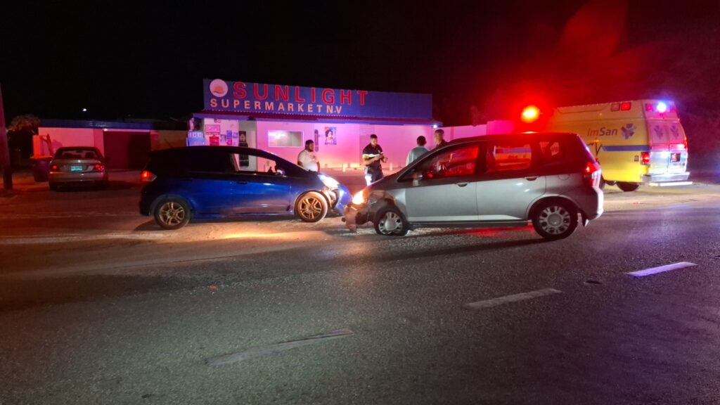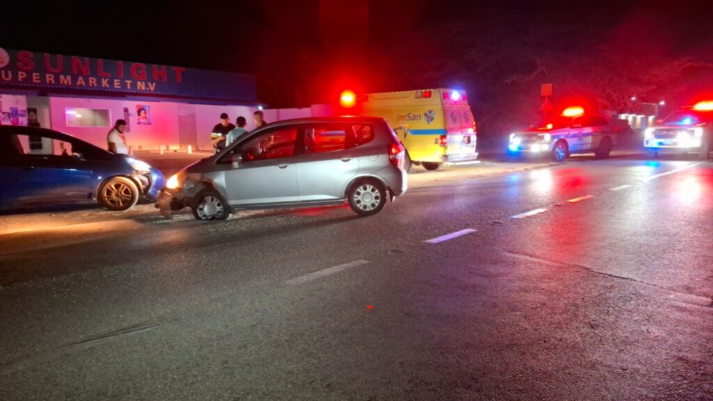 Diadomingo birando mainta polis pasando na Sasakiweg a bin topa cu un auto pega na e drempel y un dama y un caballero ta discuti. Ora polis a baha atende a compronde cu nan a pega e auto na un drempel fuera a perde e yabi di e auto. E dama a bay laga e caballero y mas despues e caballero a keda di bin busca e auto cu un takelwagen.