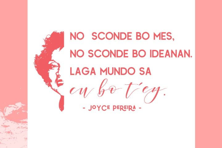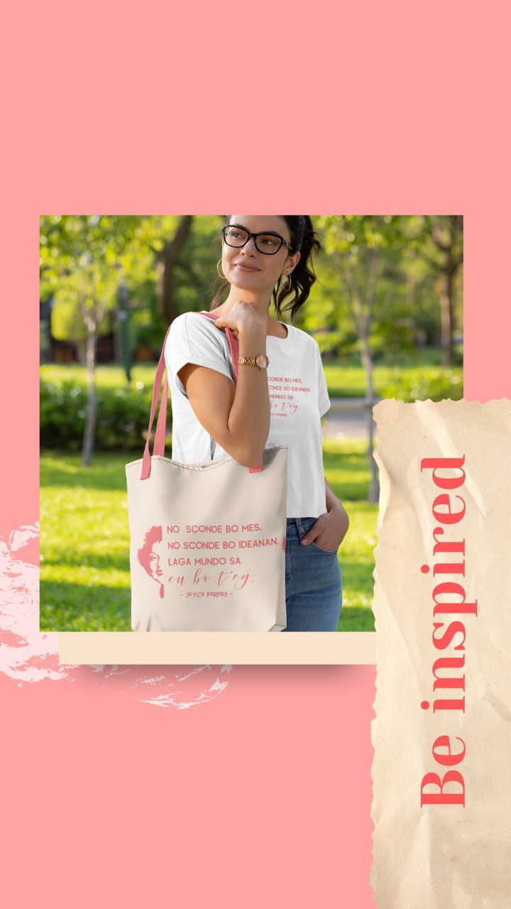 Pa e coleccion di T-shirt y tas nos ta conta cu conseho di Sra. Myrna Jansen, lider den sector di turismo “ It’s not about women vs. men, it’s about collaboration, cooperation and complementing”. Di Sra. Joyce Pereira, prome hende muhe cu Ph.D. den Papiamento, “No sconde bo mes, no sconde bo ideanan. Laga mundo sa cu bo tey”. Y por ultimo di Zuster Juliette su conseho “No lubida bo balor propio”.