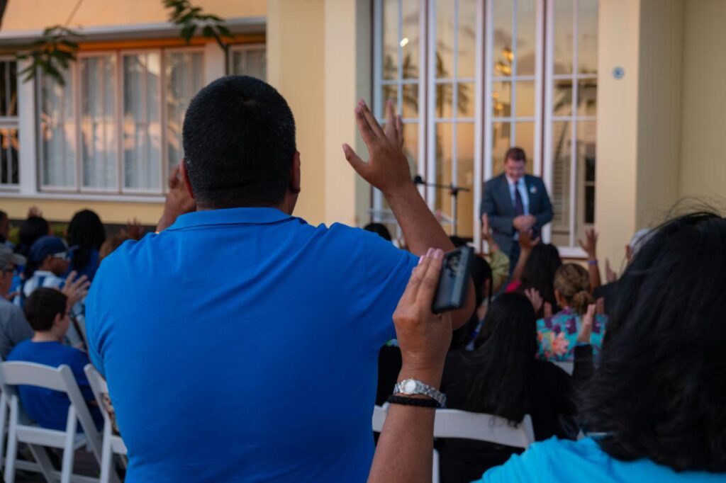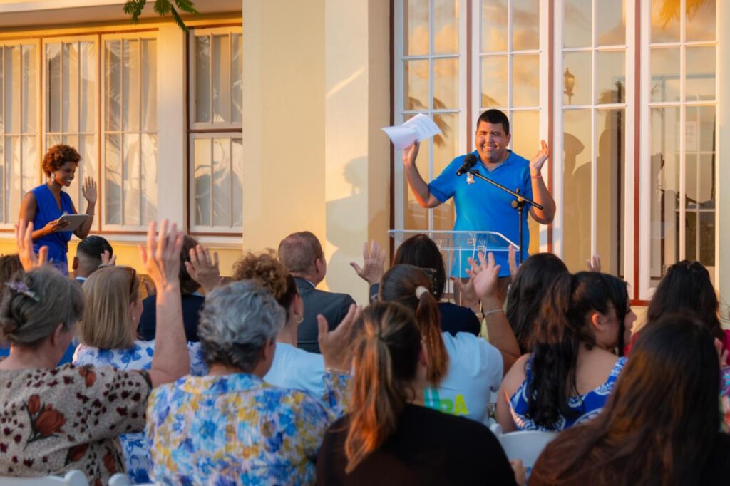 E anochi a cuminsa cu palabranan di Byron Lesire, kende a expresa su gratitud na Ministerio di Salubridad, Asuntonan Social, Cuido di Adultonan Mayor y Adiccion pa su sosten continuo y pa e bunita organisacion di e evento. Tambe el a pone enfasis riba e uzo di “silent applause”, un forma visual di mustra aprecio sin zonido, invitando tur presente pa participa den e gesto special aki.