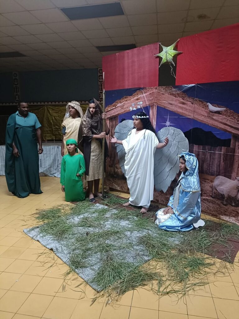 E anochi tabata un fecha hopi mas special, mirando cu dia 5 di December, ta e gran cumpleaños di Sinterklaas, kende a pasa bishita na Centro di Bario Noord, hunto cu su Pietnan, pa saluda tur muchanan bon mucha presente. Mama Claus tambe a haci acto di presencia, agregando alegria y ambiente festivo na e ocasion. Durante e evento, publico a gosa di un dramatisacion di nacemento di nos kerido “Niño Hesus.”