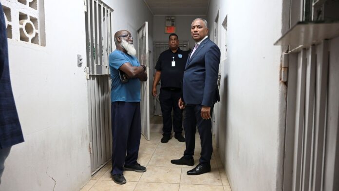 Minister di Husticia, Integracion, Transporte Publico y Energia, mr. drs. Arthur Dowers, a haci un bishita na e facilidadnan di Guarda Nos Costa na FOL y Dakota. E bishita aki ta parti di e esfuerso continuo pa mehora y modernisa e facilidadnan di detencion di personanan indocumenta cu ta pendiente nan deportacion.