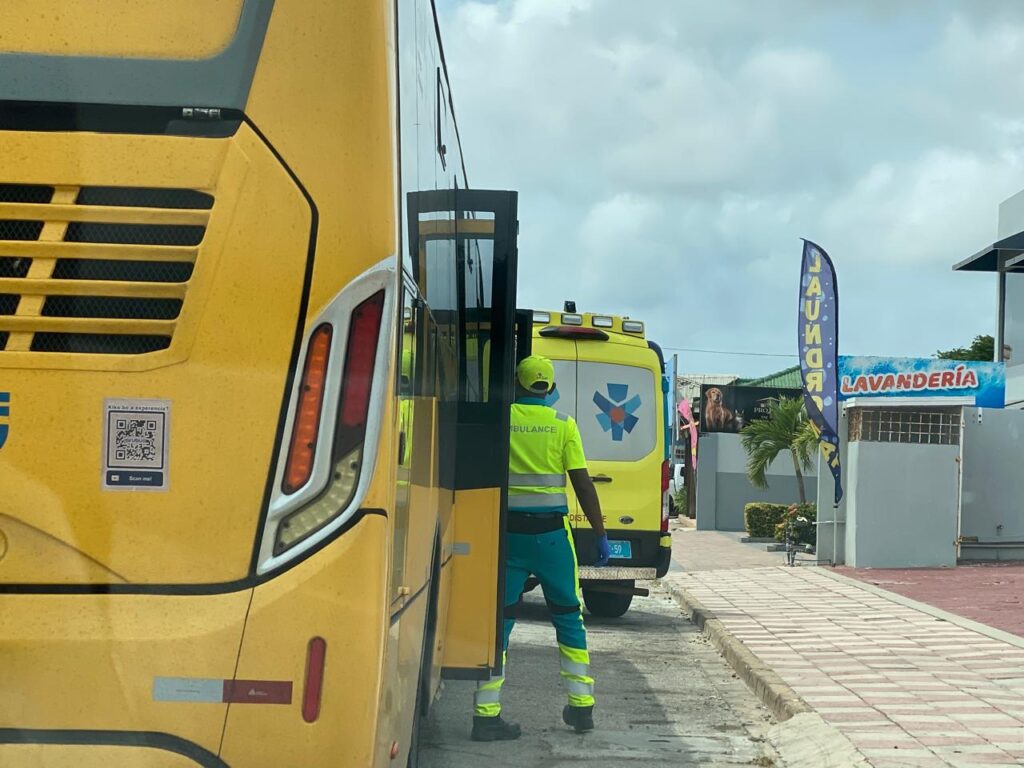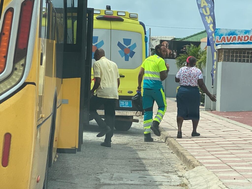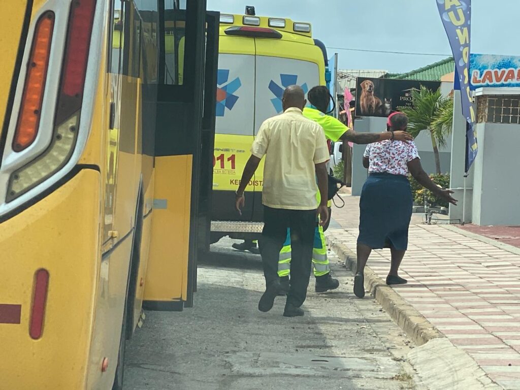 Diasabra atardi a drenta informe di cu den un bus tabata tin un dama cu tabata sangrando masha hopi for di su nanishi, mesora a para e bus y busca otro bus pa e pasaheronan y a yama ambulans pa e dama. Na yegada di e otro bus e pasaheronan a cambia di bus y a sigui nan rumbo mientras na yegada di e ambulans nan a atende e dama y a pas’e pa den e ambulans y despues transporte pa hospital.