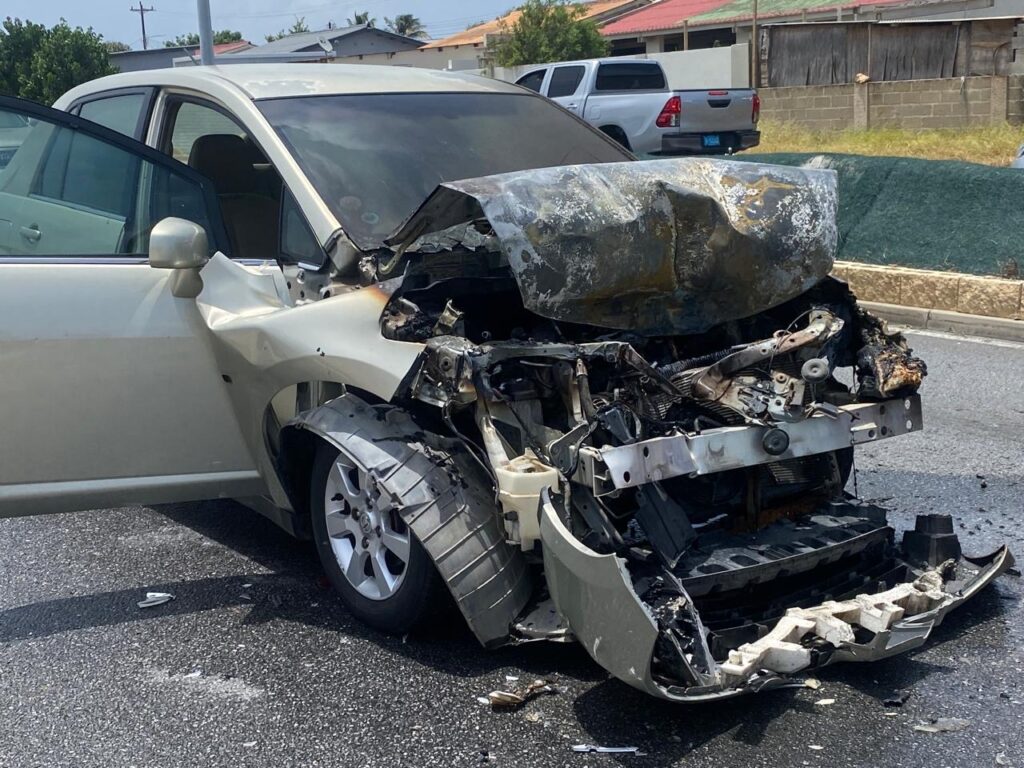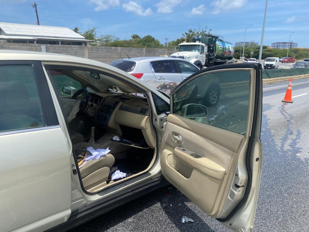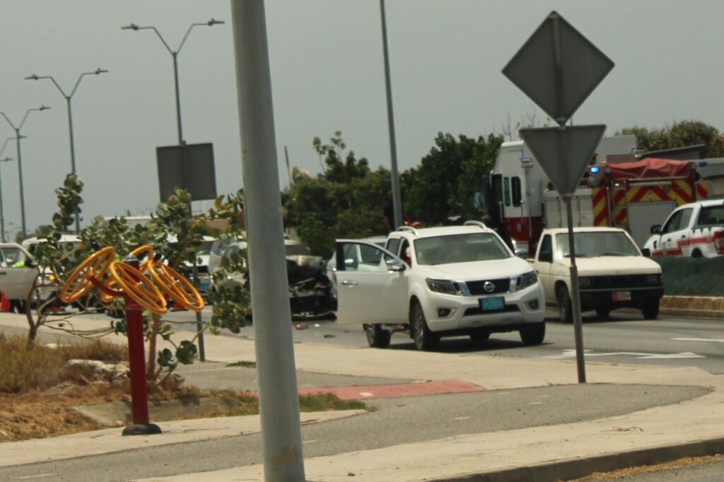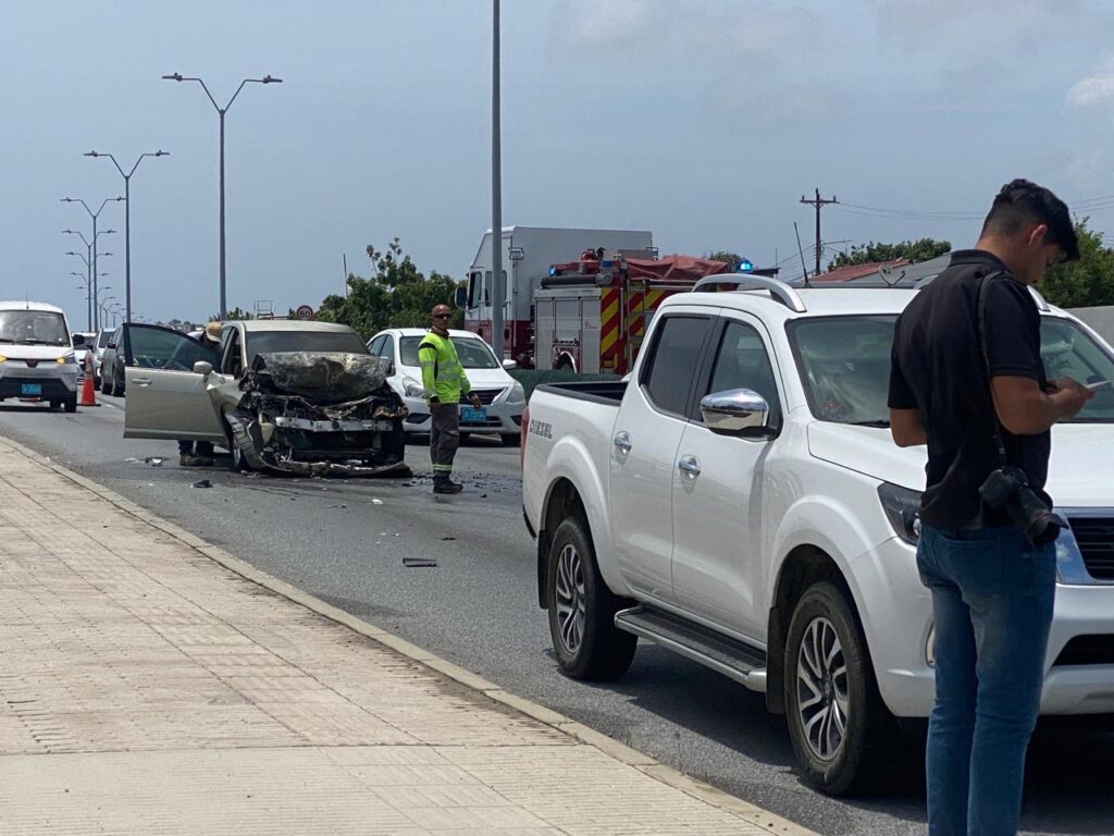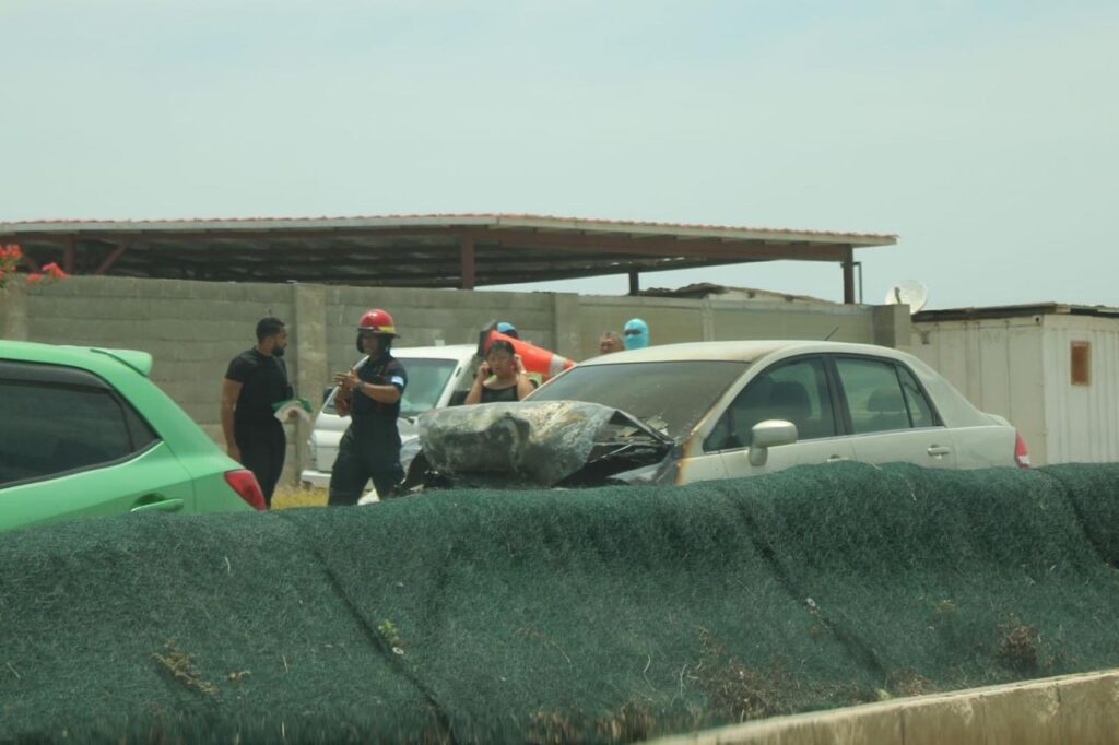 Diaranson mainta a drenta informe di cu un auto lo a pega na candela riba E.J. “Watty” Vos blvd., mesora a dirigi tanto polis como bombero na e sitio. Na yegada di bomberonan a bin constata cu aki ta trata di un Nissan Tiida bayendo pabao a bay dal fuertemente tras di un Nissan Frontier pick-up. Debi na e impacto e Nissan Tiida a pega na candela. Bomberonan mesora a combati, domina y paga e candela. Afortunadamente ningun hende a resulta herida.