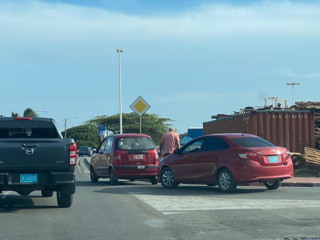 Diasabra atardi a drenta informe di un accidente na e “T-weg” na Shaba, mesora a dirigi un patruya na e sitio. Na yegada di e patruya a bin compronde cu e chagffeur di e Toyota Yaris no a regula su velocidad ni a mantene distancia a bay dal tras di e Hyundai Atos su dilanti. Afortunadamente ningun hende a resulta herida.