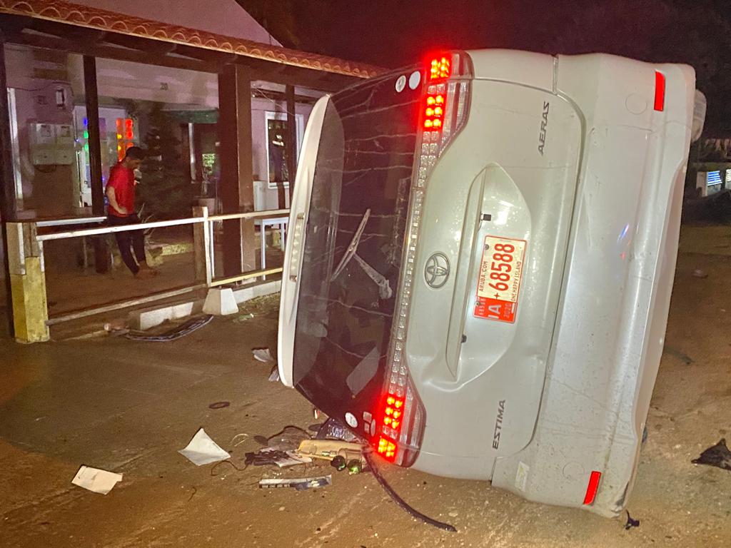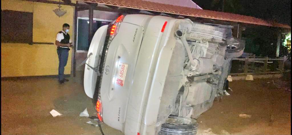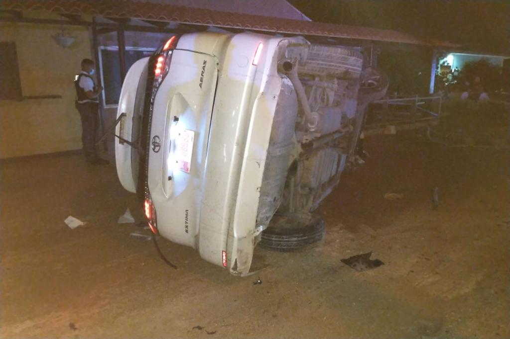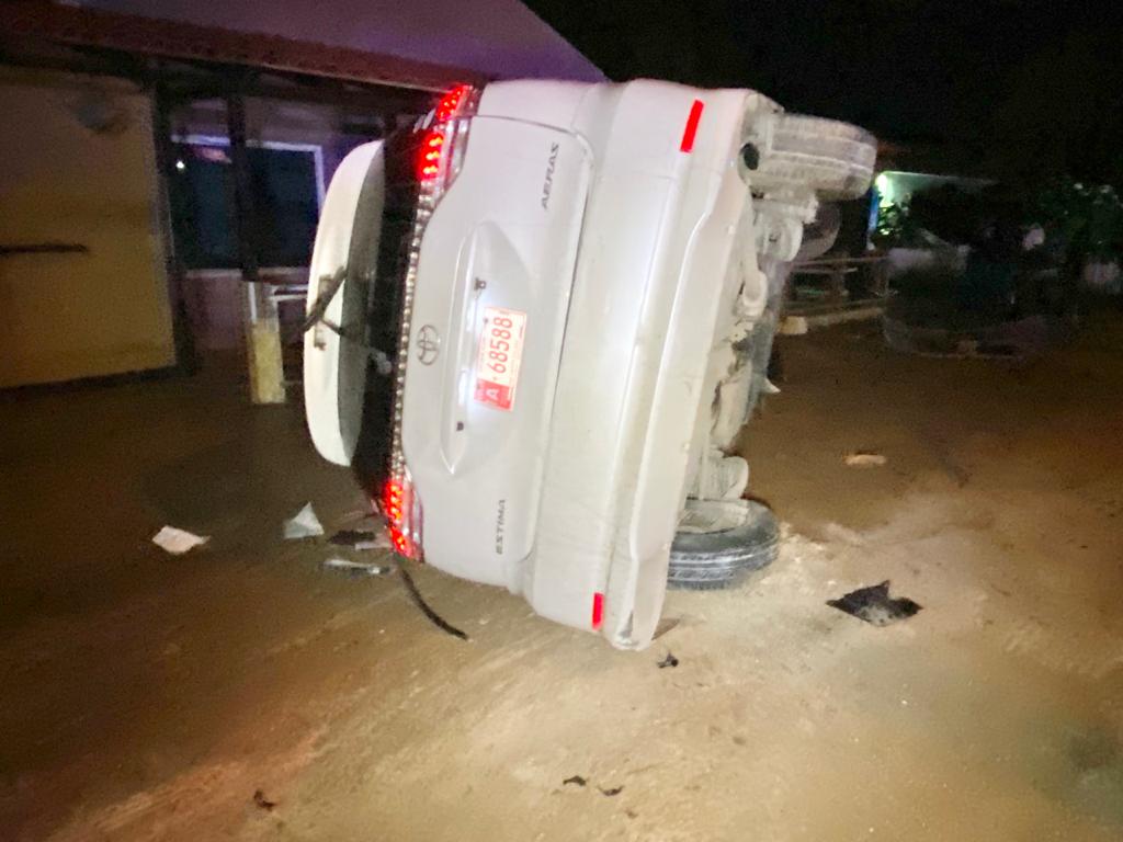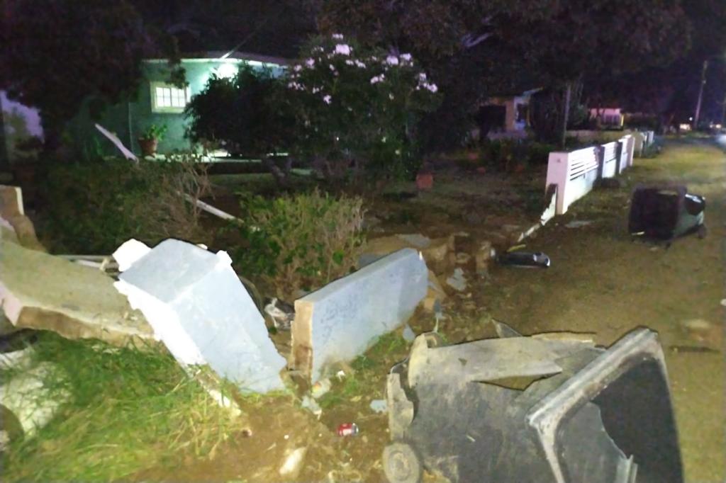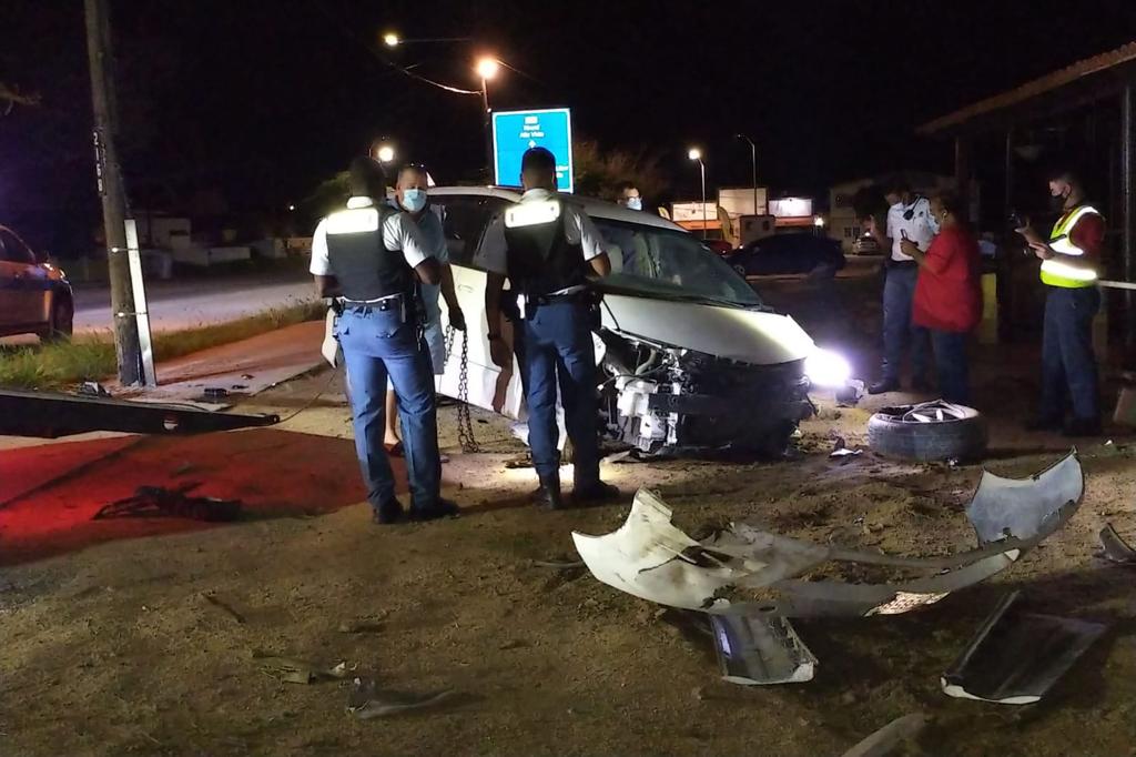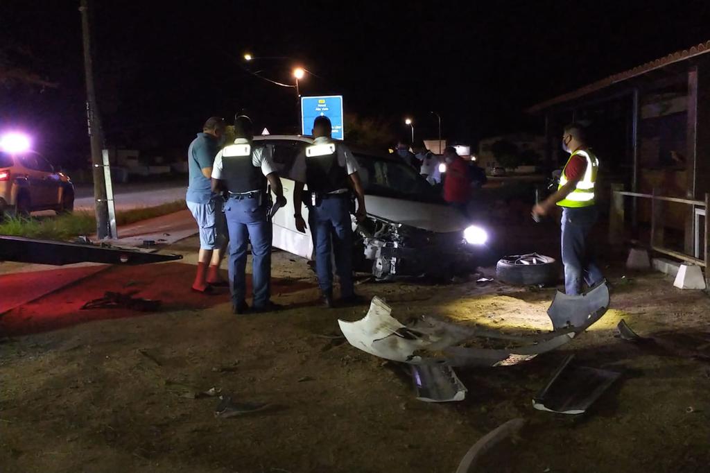 Diadomingo madruga a drenta informe di un accidente cu impacto basta fuerte na Shaba, mesora a dirigi tanto polis como ambulans na e sitio. Na yegada di e patruya a bin compronde cu aki ta trata di un accidente unda cu un chauffeur chinese bayendo nort cu un velocidad basta halto a bay desvia pa un otro auto y a perde control, baha caminda na banda drechi subiendo acera, destruyendo varios mata di aloƫ y otro mata, bay dal cura di cas kibra, benta borchinan na muraya pa finalmente bolter. Debi na e impactonan aki e chauffeur a resulta herida. Na yegada di e ambulans nan a atende e victima y a transporte pa hospital.