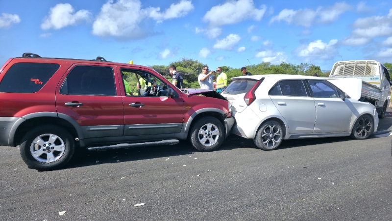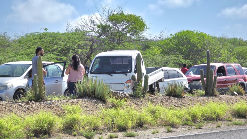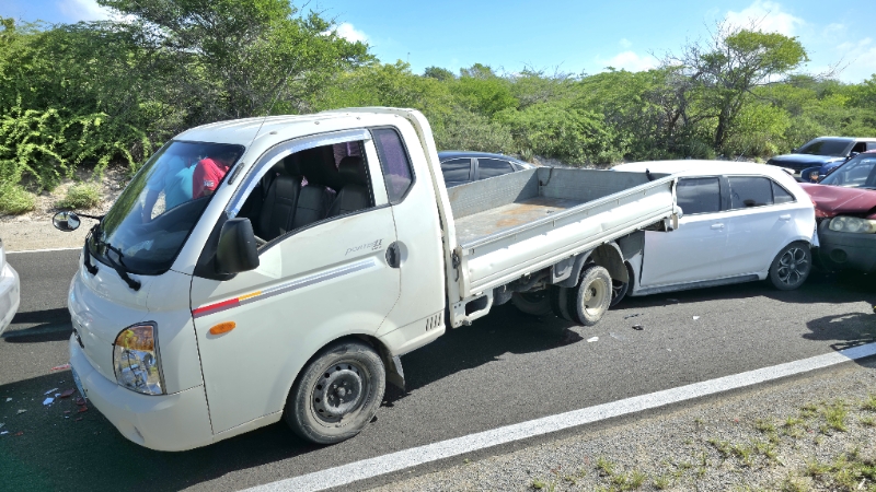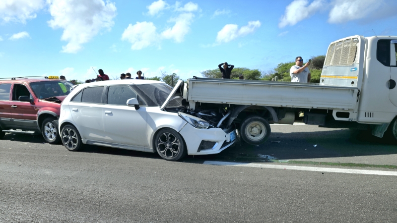 Polis cu a yega a bin topa un total di 5 envolvi. E boksmento tawata basta duro, unda cu un auto MG a dal drenta patras di un flatbed, lantando esaki.