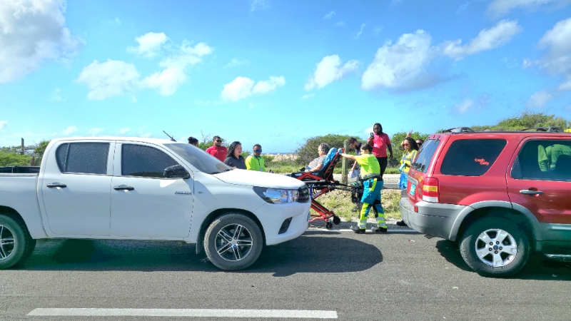 Dos ambulance a presenta na e sitio y por a mira Paramediconan transportando un señora pa ambulance. E señora tawata mustra ok, pero a wordo hiba Hospitaal pa control.