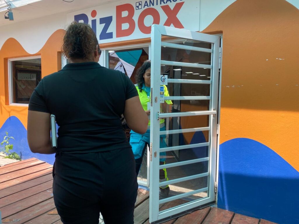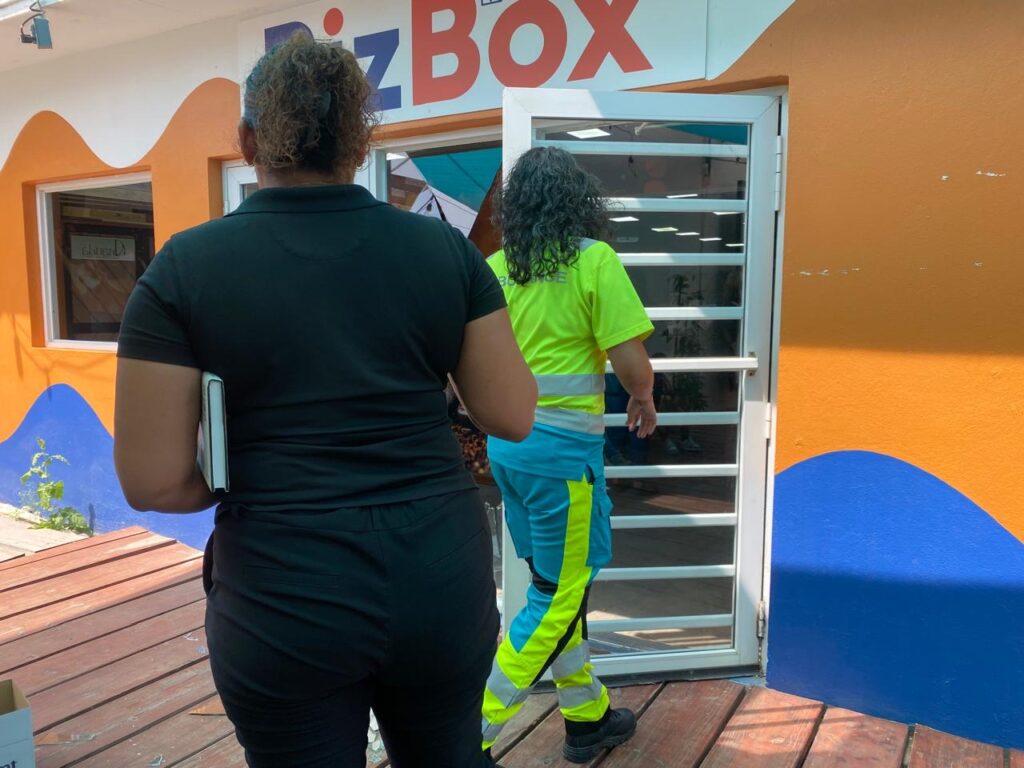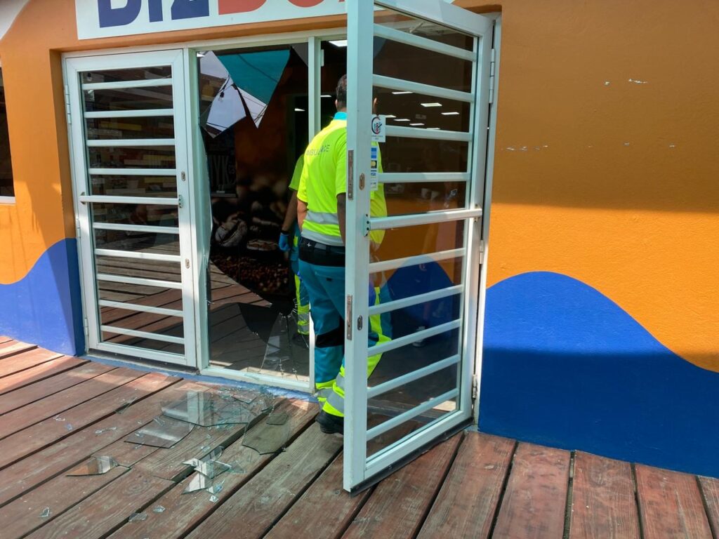 Diahuebs merdia a drenta informe di cu un cliente a pasa door di glas na Bizbox y a corta su mes, mesora a dirigi un ambulans na e sitio. Na yegada di e ambulans nan a haya e victima herida limpi caba y como cu no tabata nada grave nan a control’e na e sitio mes y no tabata necesario pa ambulans hib’e hospital.