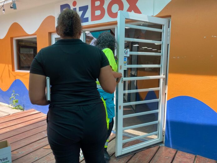 Diahuebs merdia a drenta informe di cu un cliente a pasa door di glas na Bizbox y a corta su mes, mesora a dirigi un ambulans na e sitio. Na yegada di e ambulans nan a haya e victima herida limpi caba y como cu no tabata nada grave nan a control’e na e sitio mes y no tabata necesario pa ambulans hib’e hospital.