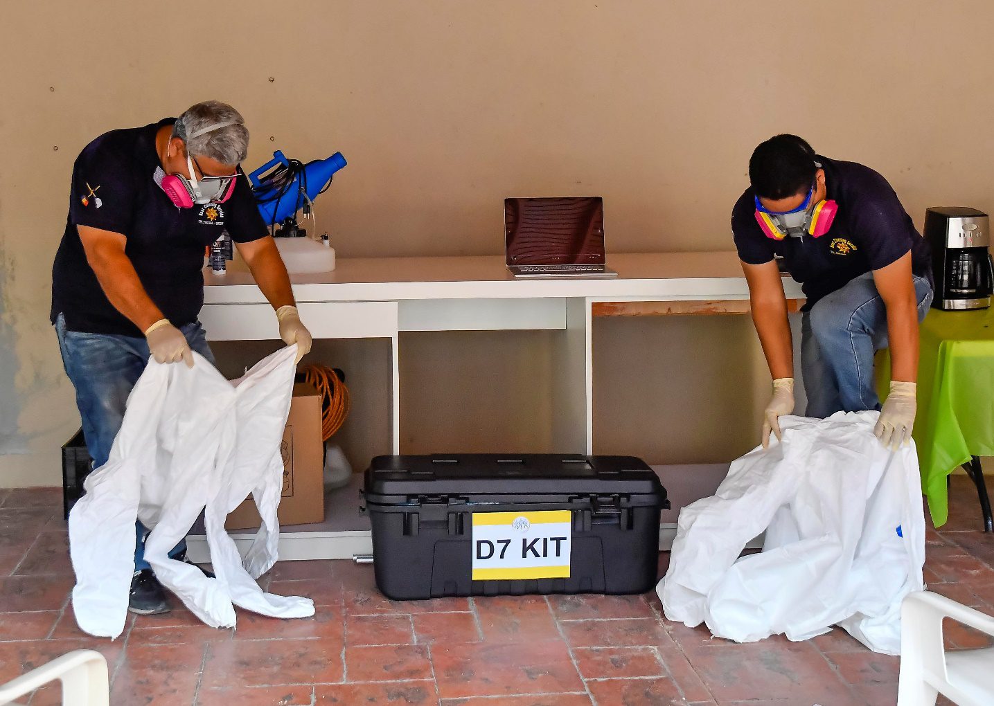 Un di e ekiponan local cu ta entrenando cu D7 desinfeccion ta Vacation Aruba.com.