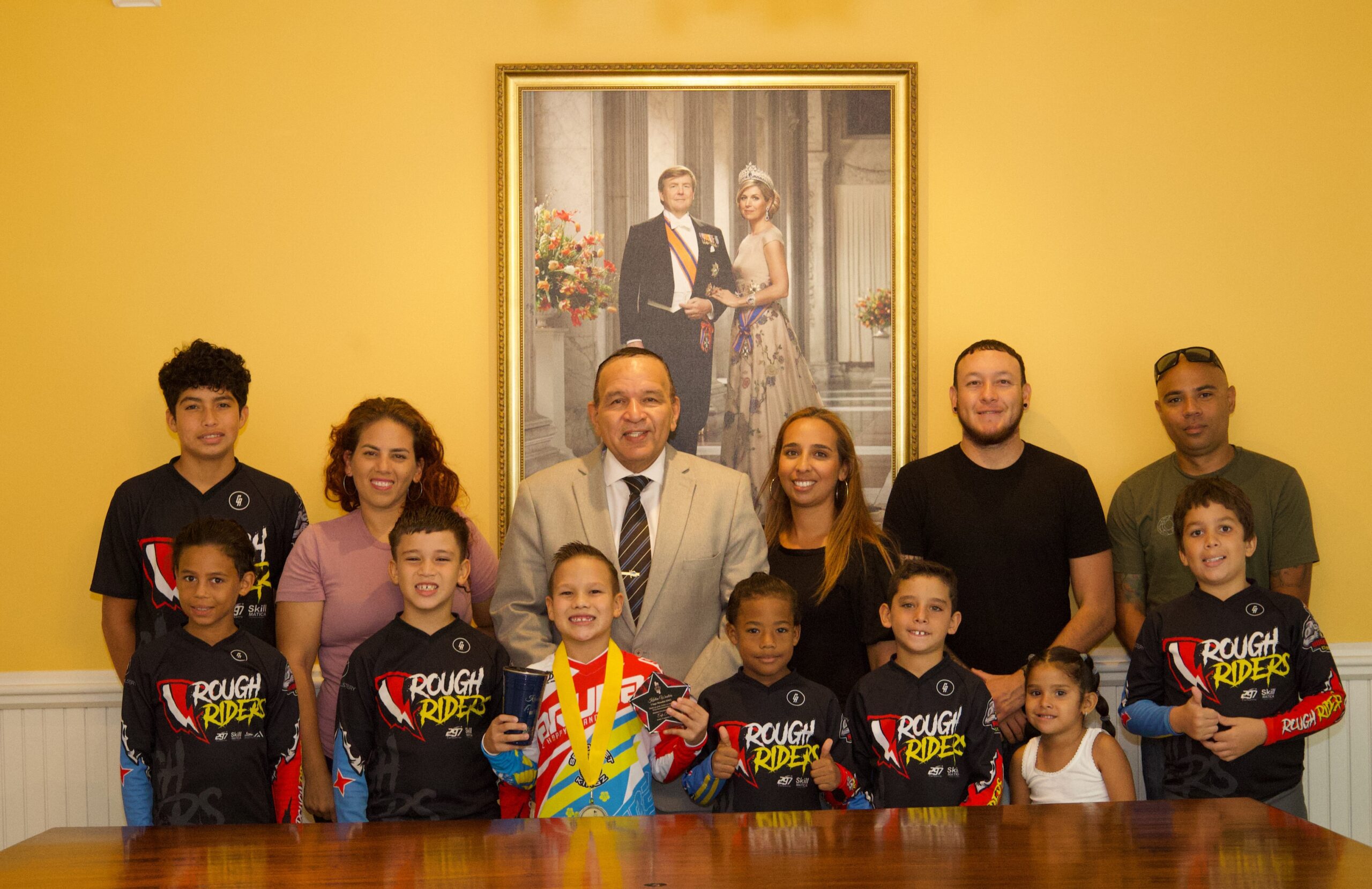 ORANJESTAD: Diamars atardi den un encuentro ameno Minister Endy Croes a ricibi e hoben atleta Kailen Wouters kende recientemente a participa den e campeonato mundial di BMX 2022 cu a tuma luga na Nantes, Francia. Na unda cu Kailen a logra di 5 luga di e miho nan na mundo den su categoria di mucha homber 8 aña. Un total di 25 pais y 55 coredo a participa den e UCI BMX World Championships 2022. Esaki sigur ta un logro grandisimo pa Kailen cu a subi e plataforma mundial di BMX den su categoria di 8 aña.