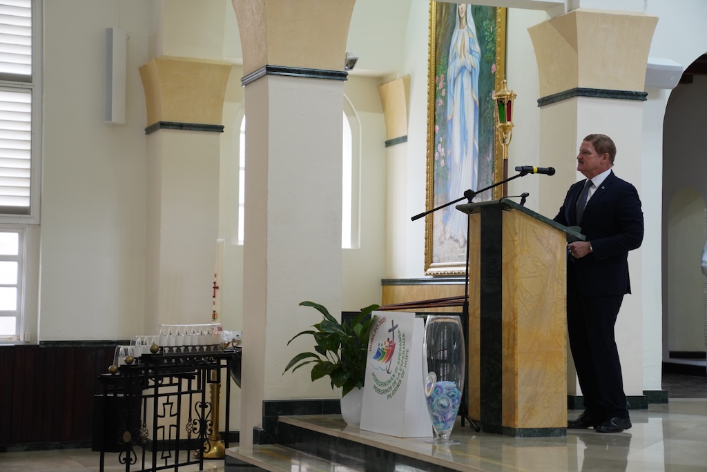 Ban sigui pidi Señor pa proteccion, sabiduria y balentia pa nos Cuerpo Policial di Aruba, pa nan por sigui defende nos estado di derecho, pa nos isla por continua di ta esun mas sigur den region y pa e comunidad por sinti nan mes sigur cada dia.