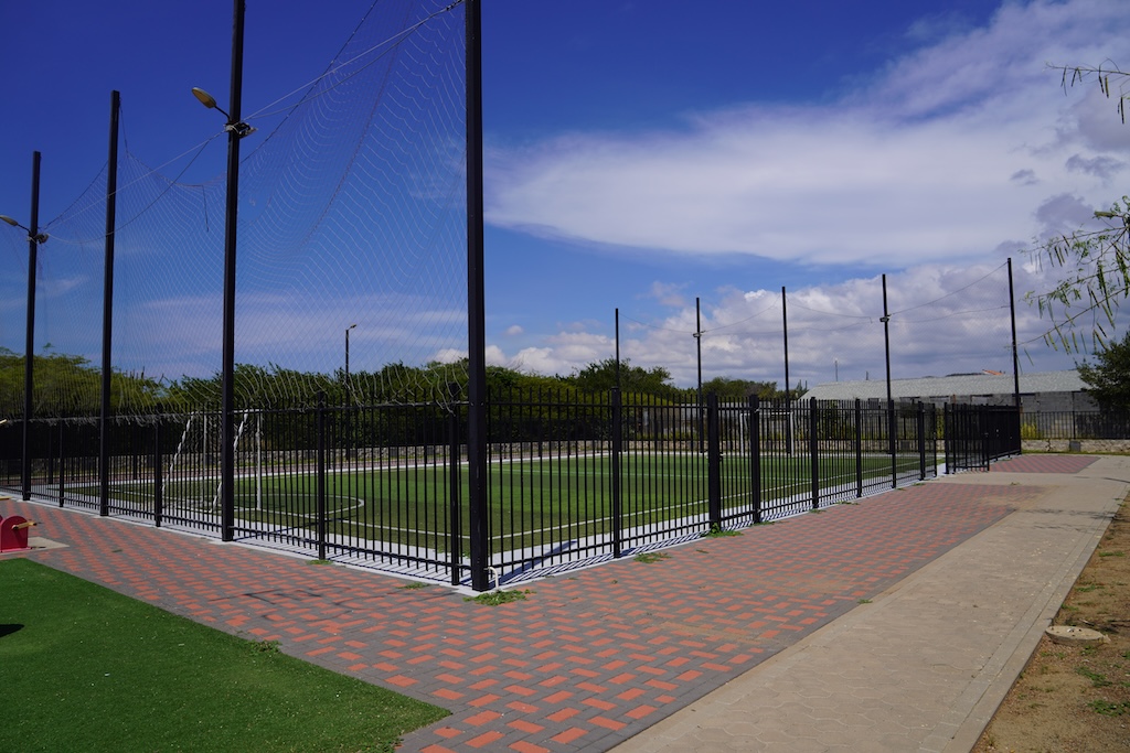 E presencia di algun individuo cu menos bon intencion tambe ta algo cu semper nan ta alerta riba dje. Lo ta ideal si por mira mas siguridad y coordinacion di e cancha deportivo. Un persona cu por encabesa y dirigi actividad riba e veld caminda tur mucha por hunga trankil.