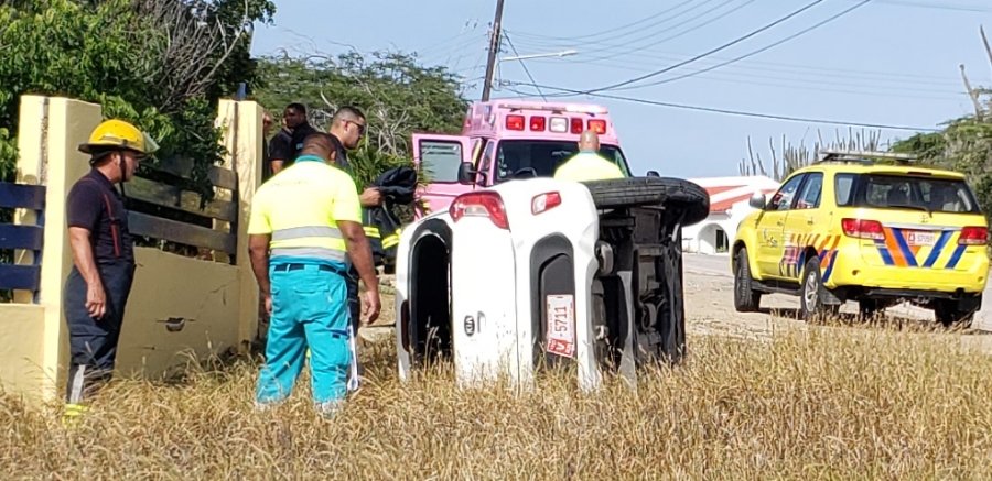 Tawata trata di un Kia Picanto v-car maneha pa un dama. E chauffeur oa un of otro motibo a perde control ariba e auto y a kita bay na su man drechi y dal contra cura di e cas. Na e sitio tawata tin ambulance y tambe e Rapid Responder.