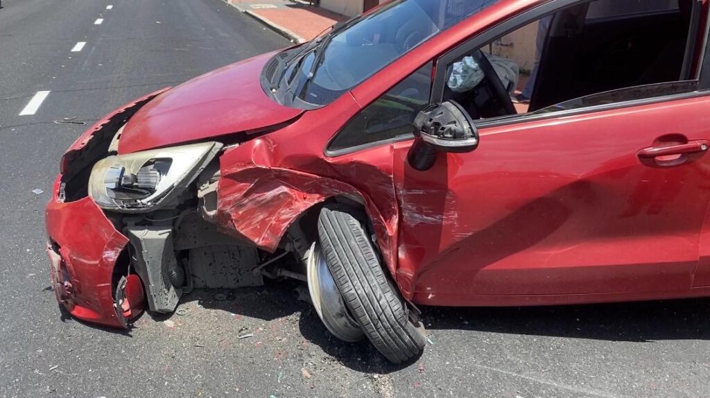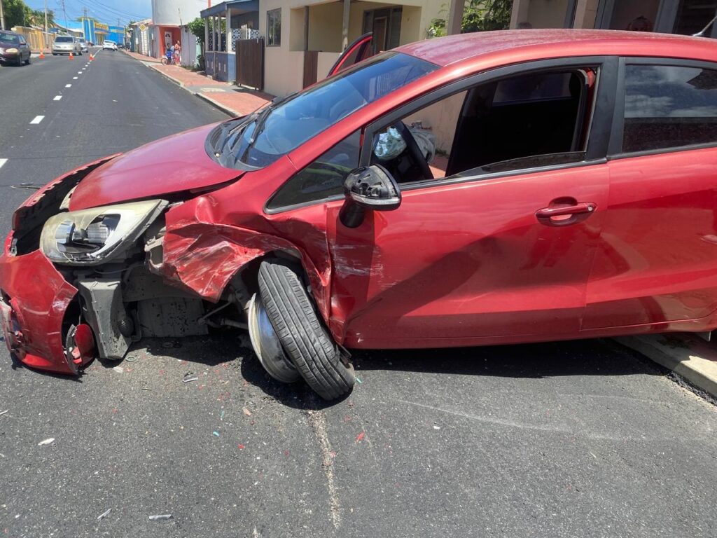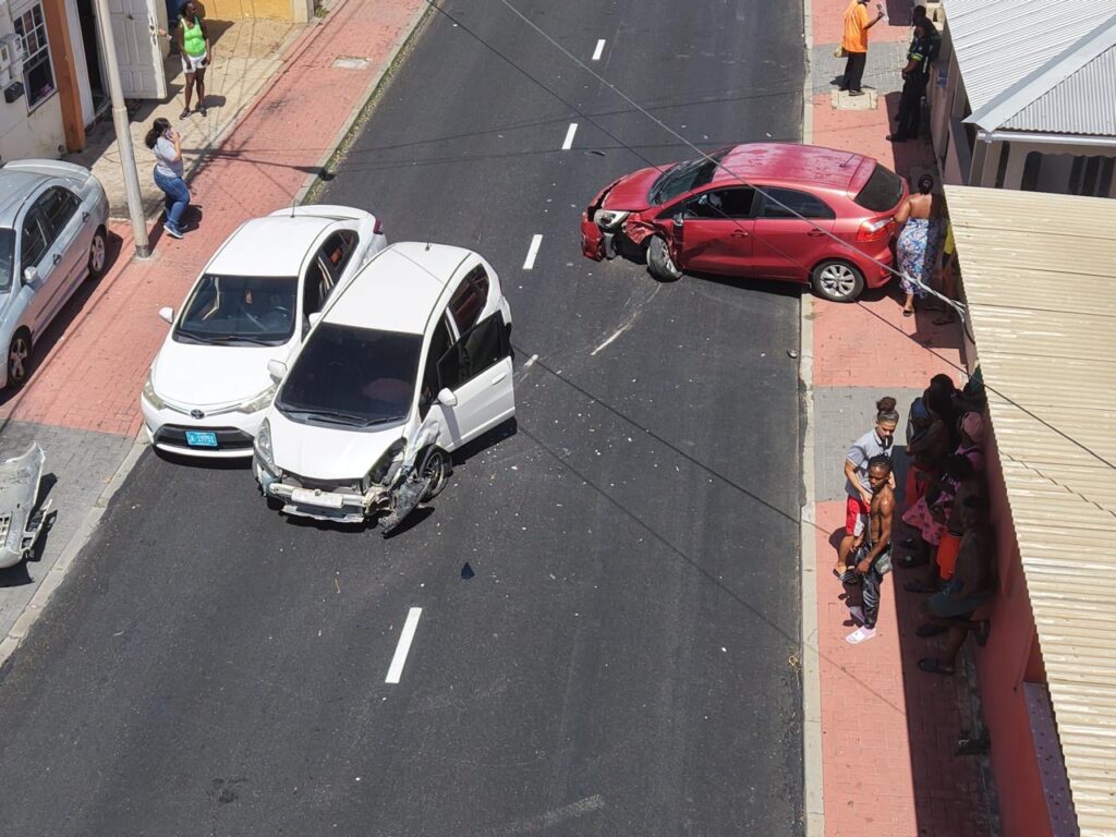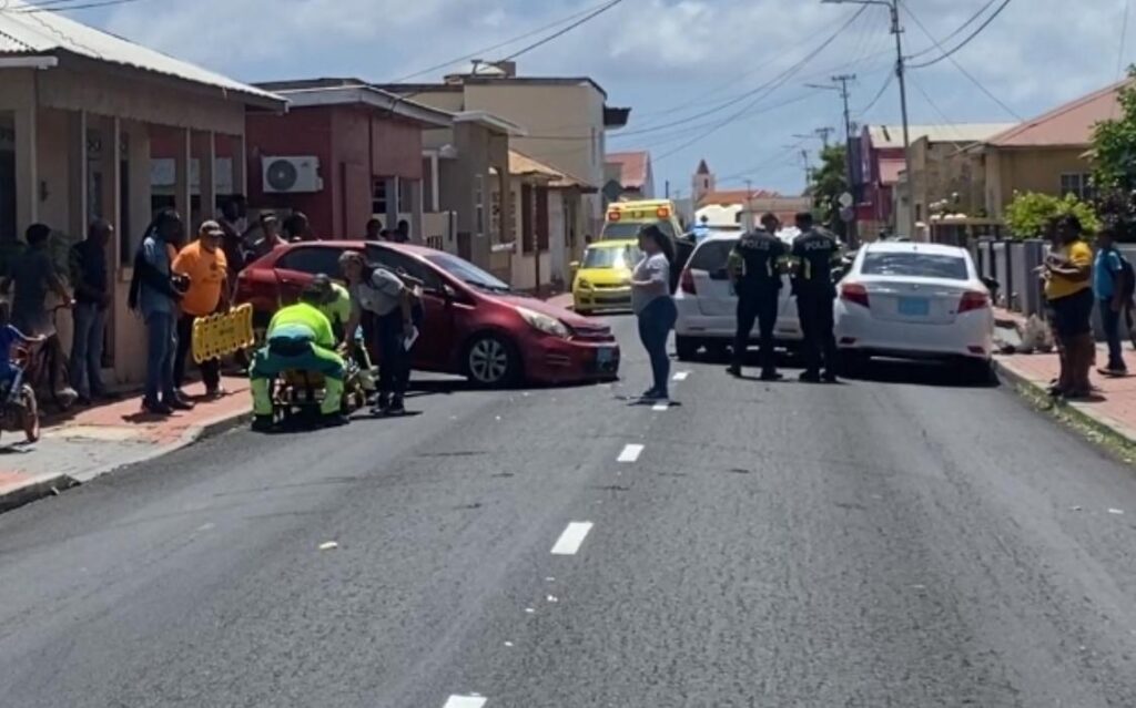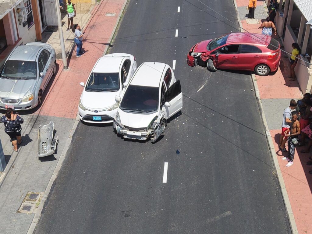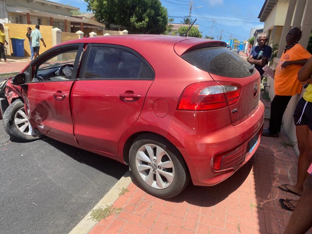 Dialuna merdia a drenta informe di un accidentecu hende herida na Bernhardstraat, mesora a dirigi tanto polis como ambulans na e sitio. Na yegada di e patruya a bin compronde cu aki ta trata di un accidente unda cu un chauffeur hoben y irresponsabel coriendo un Honda Fit y a bay pasa un auto Toyota Yaris cu a pone señal cu e ta bay para banda di caminda pa baha algun mucha di school na cas pero como cu e chauffeur hoben no tabata tin pasenshi ela bay pasa e Yaris aki sin a wak trafico contrario y a bay dal un Kia Rio y djey dal tambe riba e Yaris. Debi na e fuerte impacto cu a ranca e wiel completo di e Rio y e dama chauffeur di e Rio a resulta herida. Na yegada di e ambulans nan a atende e dama chauffeur y a transporte pa hospital.