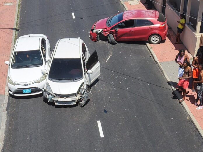 Dialuna merdia a drenta informe di un accidentecu hende herida na Bernhardstraat, mesora a dirigi tanto polis como ambulans na e sitio. Na yegada di e patruya a bin compronde cu aki ta trata di un accidente unda cu un chauffeur hoben y irresponsabel coriendo un Honda Fit y a bay pasa un auto Toyota Yaris cu a pone señal cu e ta bay para banda di caminda pa baha algun mucha di school na cas pero como cu e chauffeur hoben no tabata tin pasenshi ela bay pasa e Yaris aki sin a wak trafico contrario y a bay dal un Kia Rio y djey dal tambe riba e Yaris. Debi na e fuerte impacto cu a ranca e wiel completo di e Rio y e dama chauffeur di e Rio a resulta herida. Na yegada di e ambulans nan a atende e dama chauffeur y a transporte pa hospital.