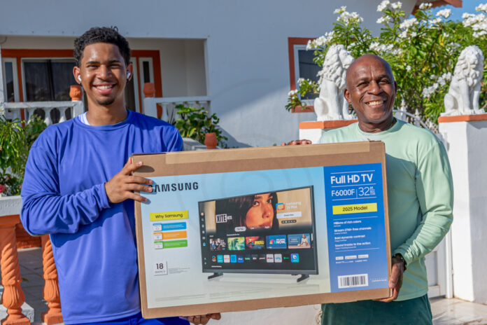 Master Alberto Klaber a entrega e Full HD TV na e yiu homber di Danica Delamore.