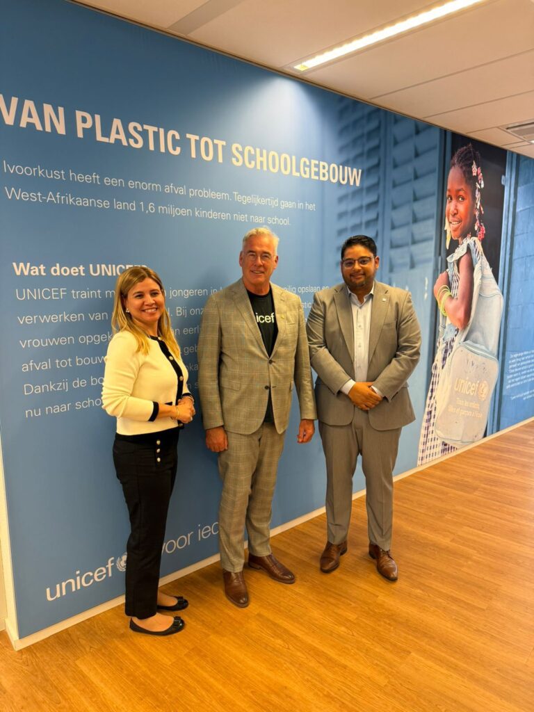 Den marco di e bishita oficial di delegacion di AVP na Hulanda, nan a haya un presentacion importante for di Fondo Internacional Infantil di Nacionnan Uni (UNICEF) referente na e colaboracion cu a cuminsa na aña 2013 entre Aruba y UNICEF Nederland. For di e tempo ey, UNICEF a sigui traha estrechamente cu tur gobierno y stakeholder pa promove bienestar y proteccion di nos muchanan.