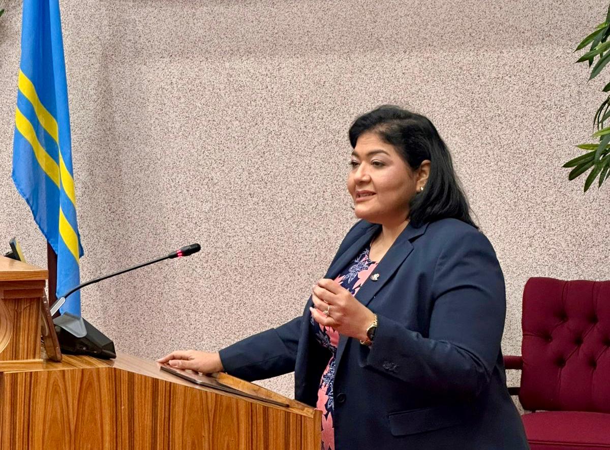 “E enfasis no solamente mester ta pa resolve problema di awe, pero mester pensa seriamente riba e futuro di nos grandinan y di e sociedad Arubiano en general,” Parlamentario Xiomara Maduro ta enfatisa.
