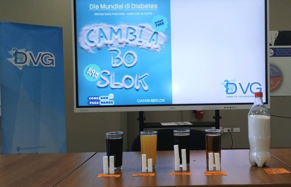 E prome tema di e campaña lo ta “Cambia bo Slok”. Den periodo di november te januari, DVG lo enfoca riba consumo di bebida cu ta contene hopi sucu.